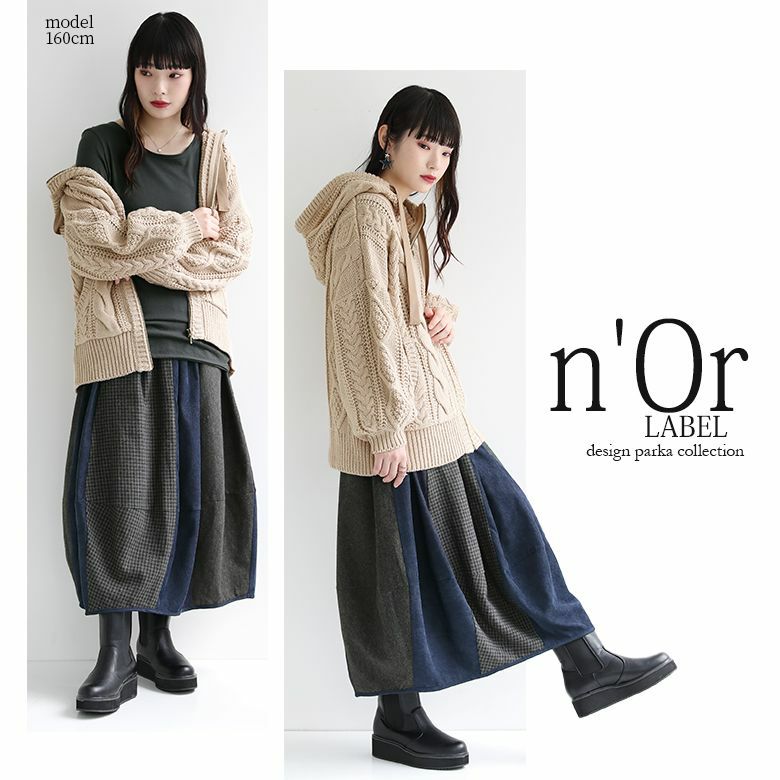 着回し力も抜群≪n'OrLABEL≫ボリューム袖ケーブルニットパーカーです。