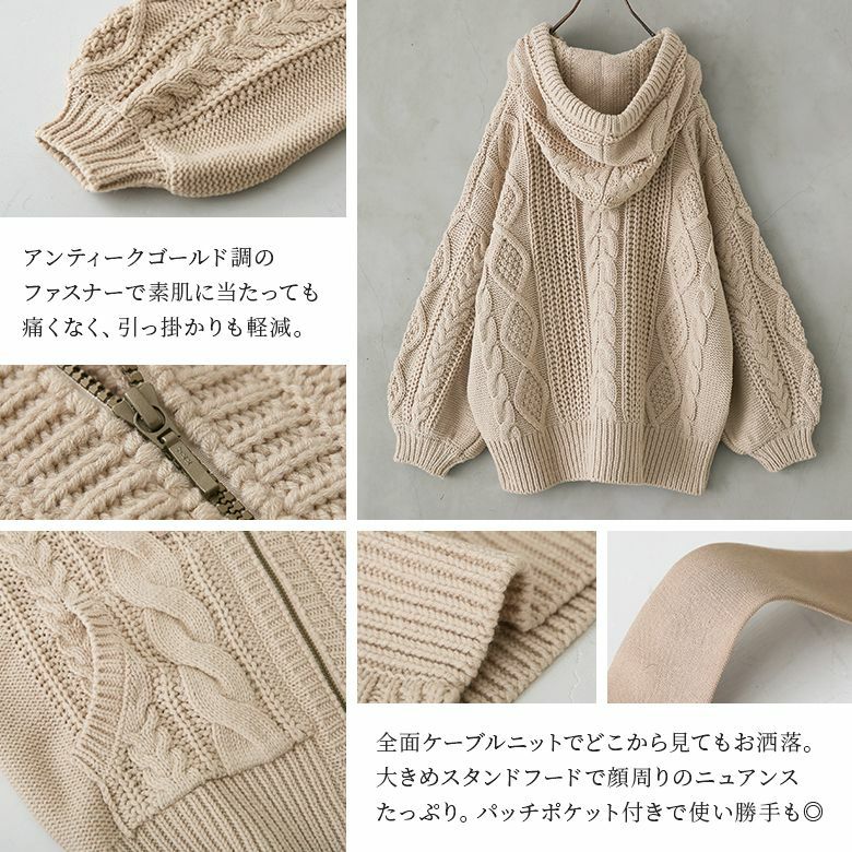 ゆるっとラフなケーブルニットパーカー♪