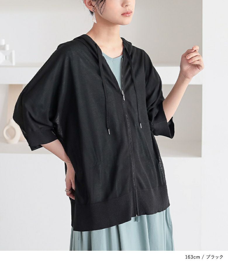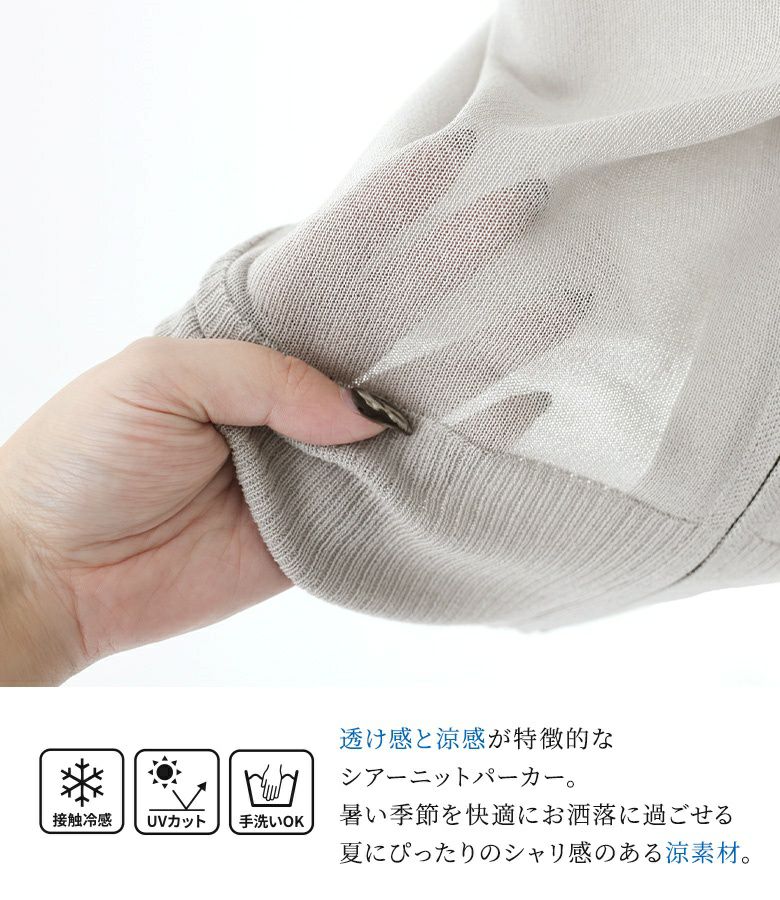 UVカット&接触冷感で、暑い季節も快適なシアーニットパーカー。