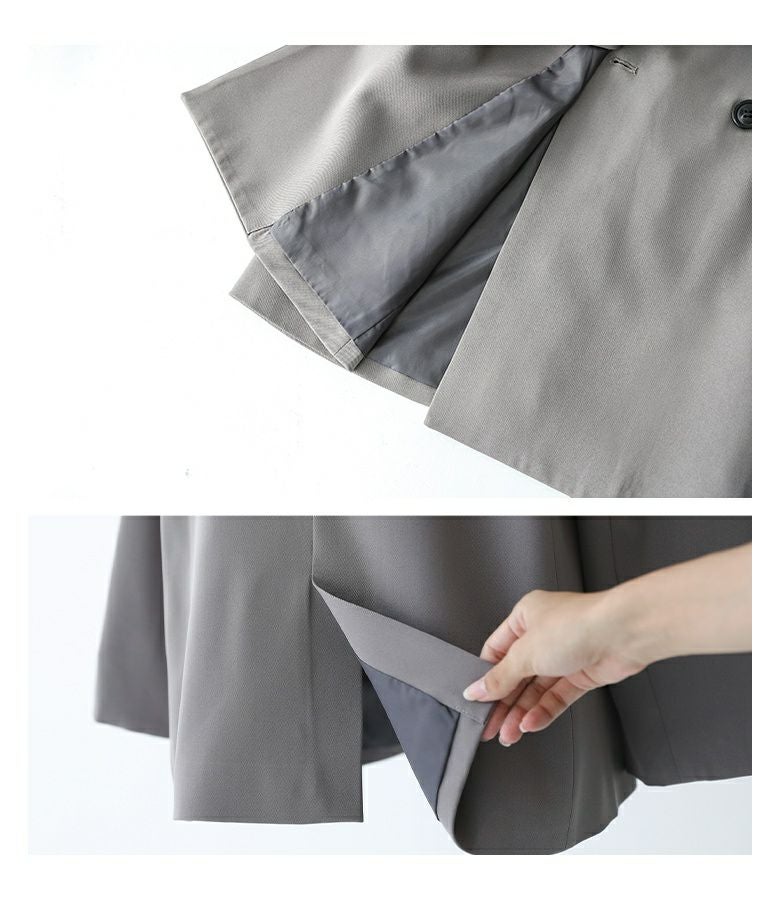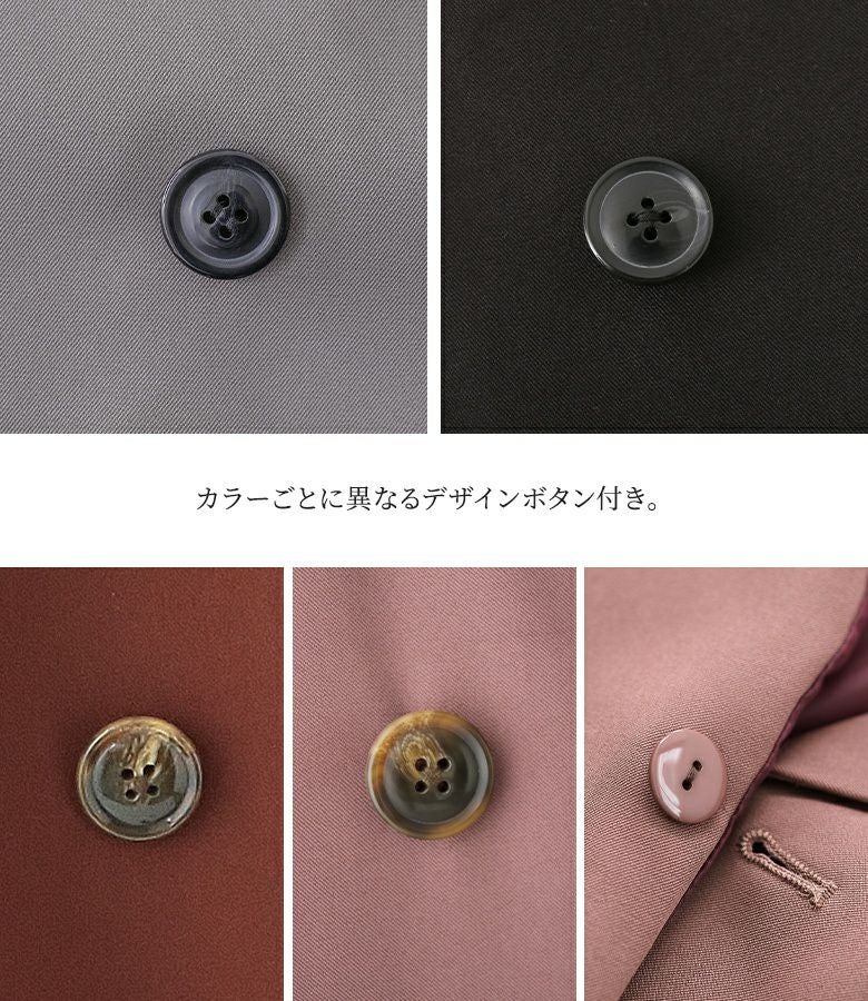 マットな光沢で上質感があり、シワになりにくくお手入れしやすい生地。程よい厚みで、ロングシーズン活躍します。