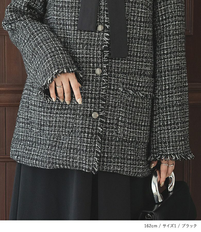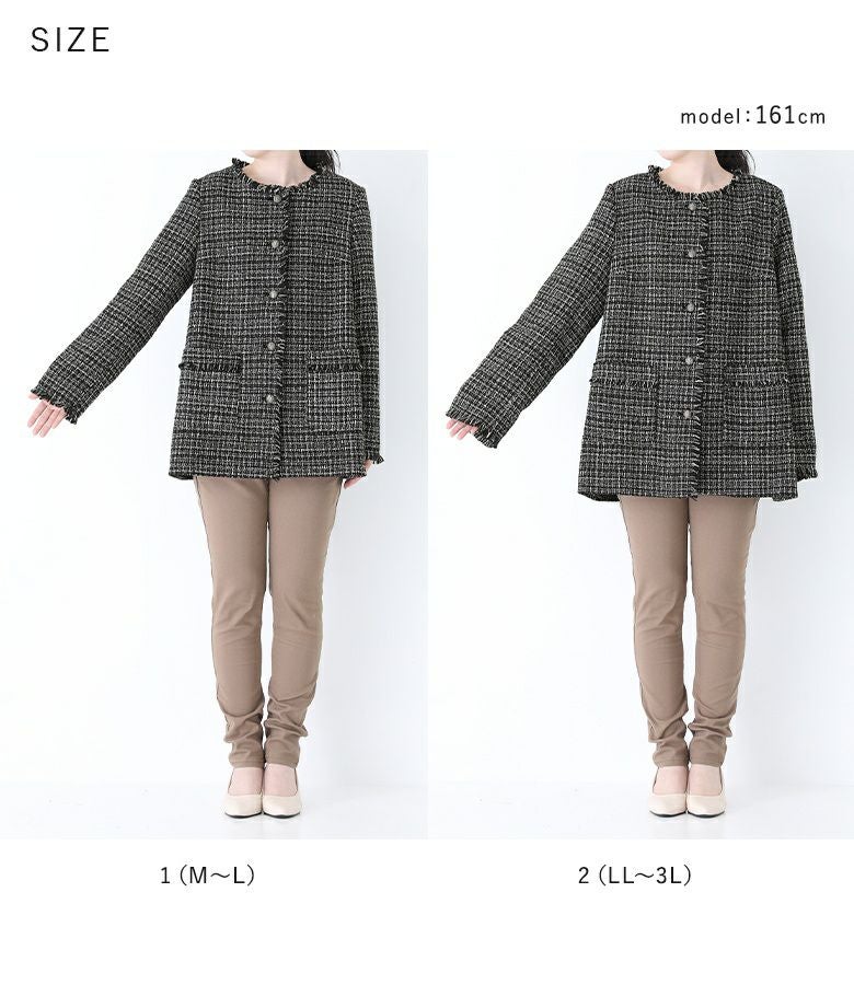 選べるM~3Lサイズ展開!上品な印象のモノトーンツイードジャケット。