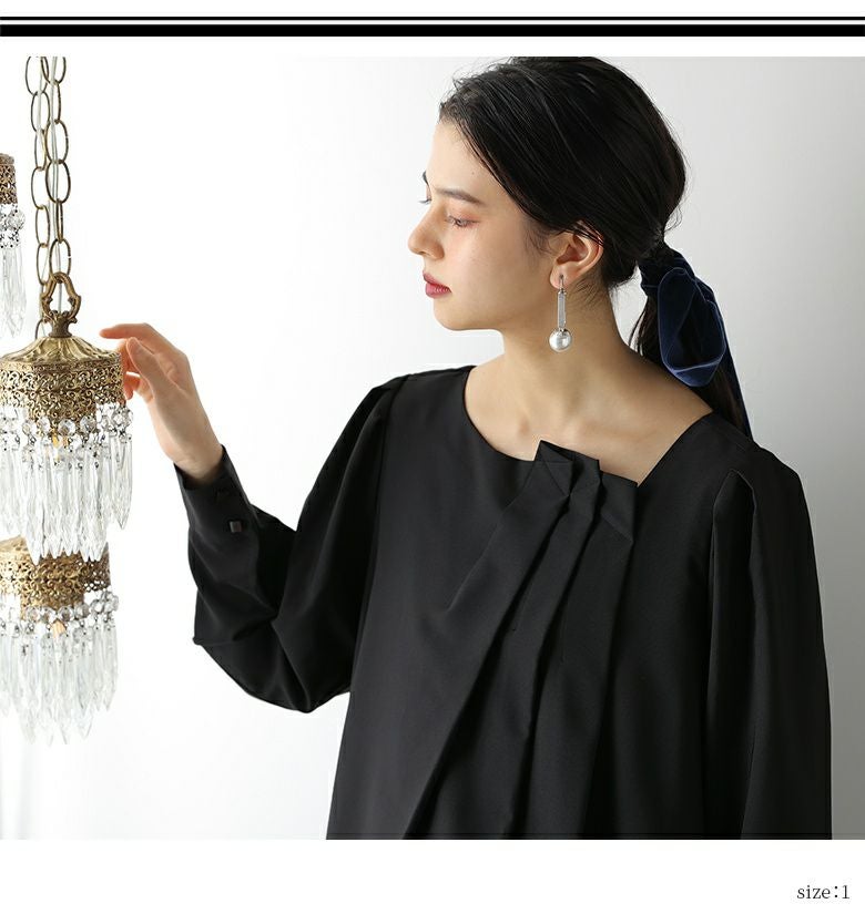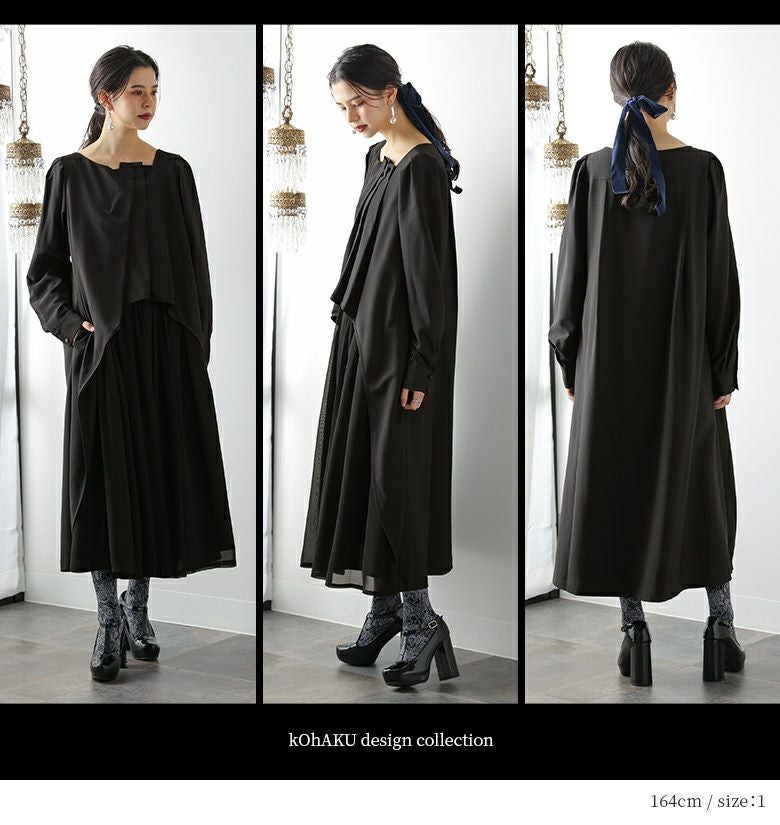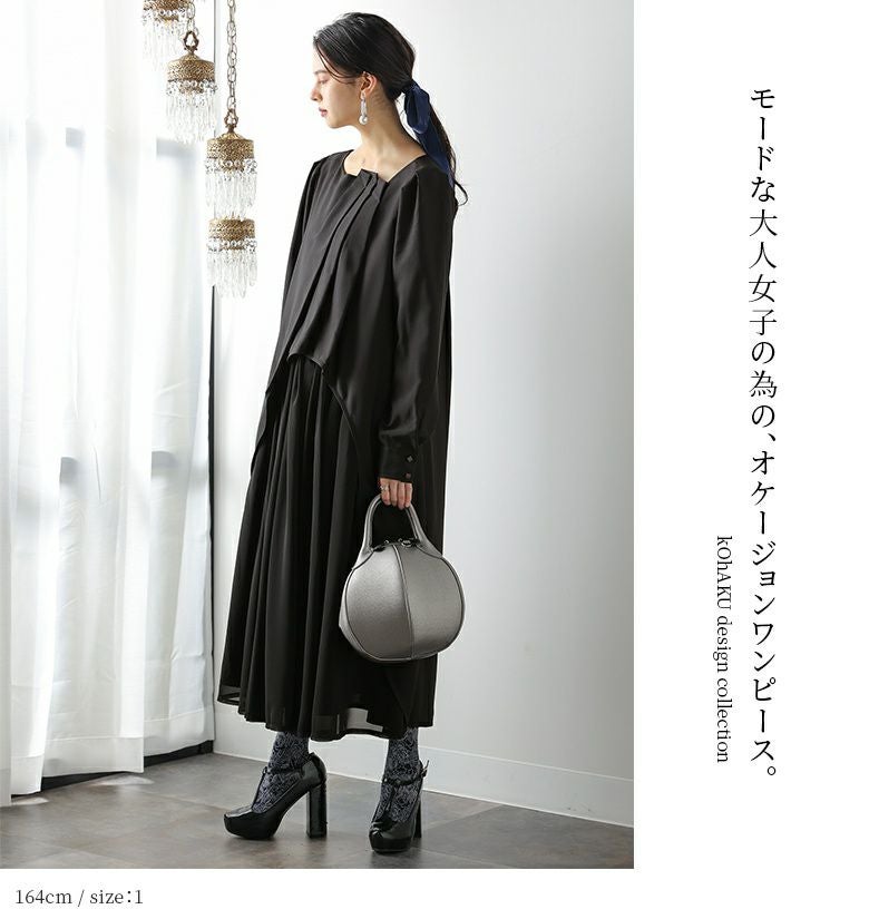 モードな装いを格上げする≪kOhAKU≫タックデザイン異素材オケージョンワンピです。