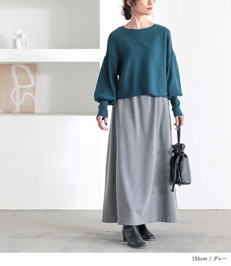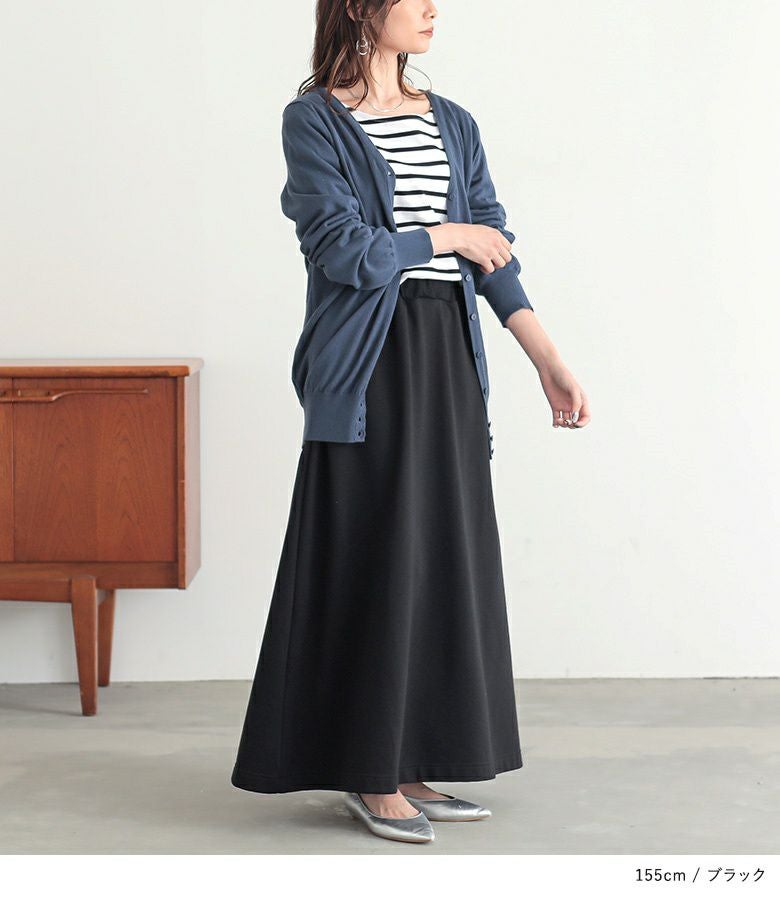 ロング丈でももたつかないスウェットスカートです。