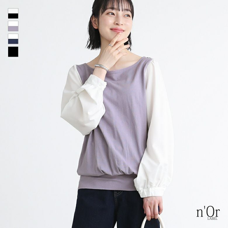 [ID]nz-179_tan0273[n'OrLABEL異素材MIX×配色デザインカットソー]