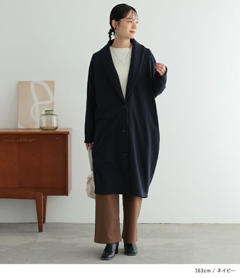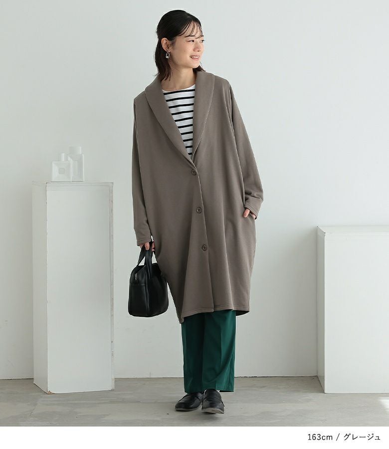着丈は膝下位で、袖丈は手首が隠れる位です。全体的に程良いゆとりがあるので、ゆったり素敵に着る事が出来ました。