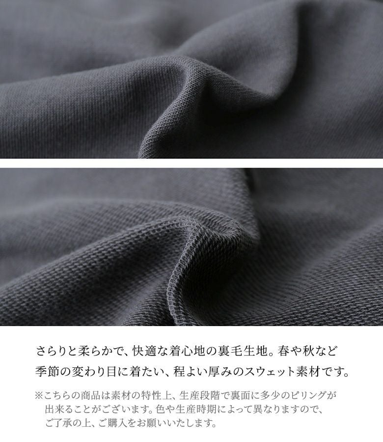 厚すぎず薄すぎない着心地の良いスウェット素材を使用しているから、これからの季節はもちろん年中活躍する一枚です。