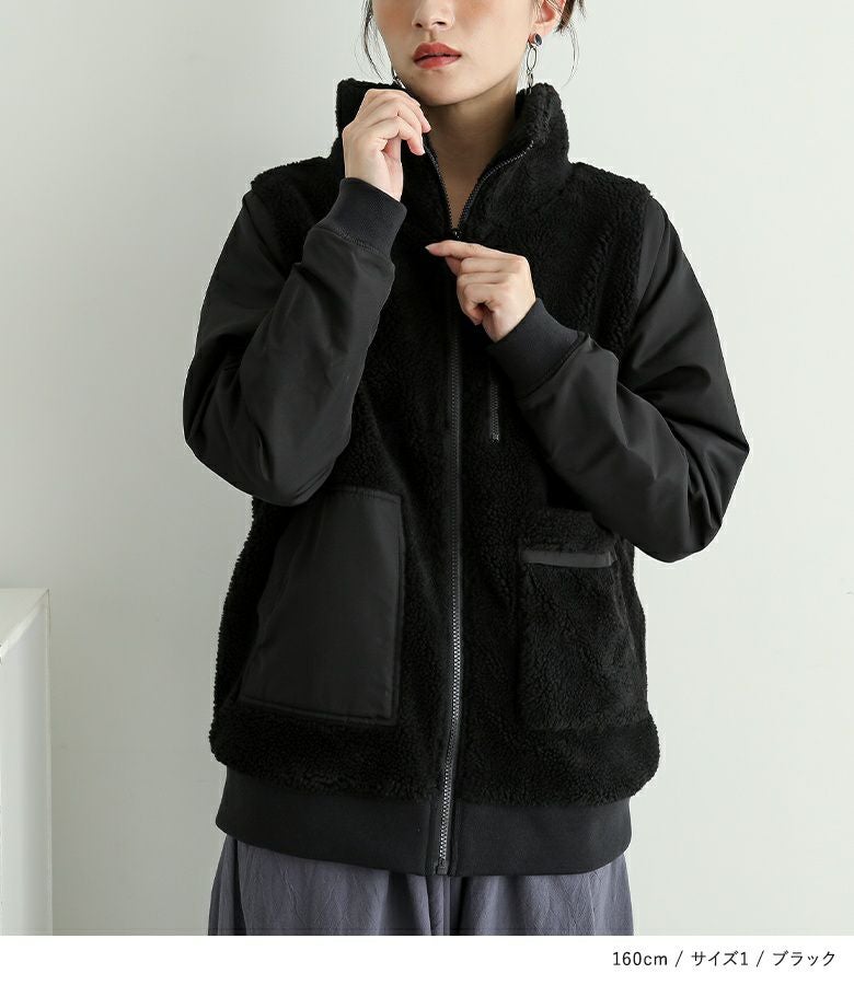 素材表地、ボア、裏地、中綿:ポリエステル100% リブ:ポリエステル99% ポリウレタン1%