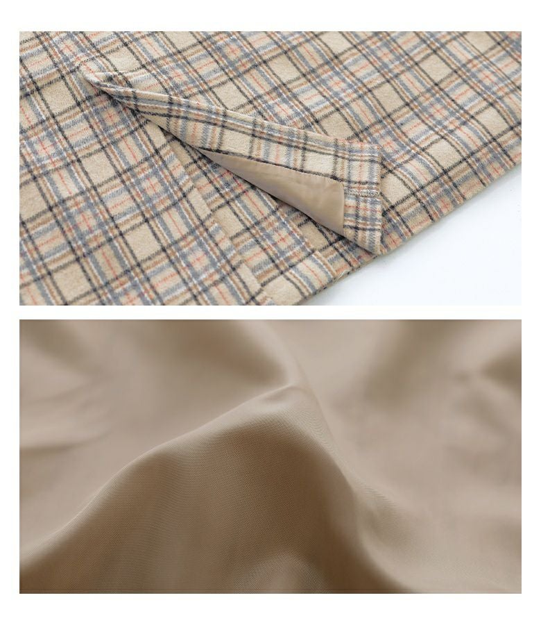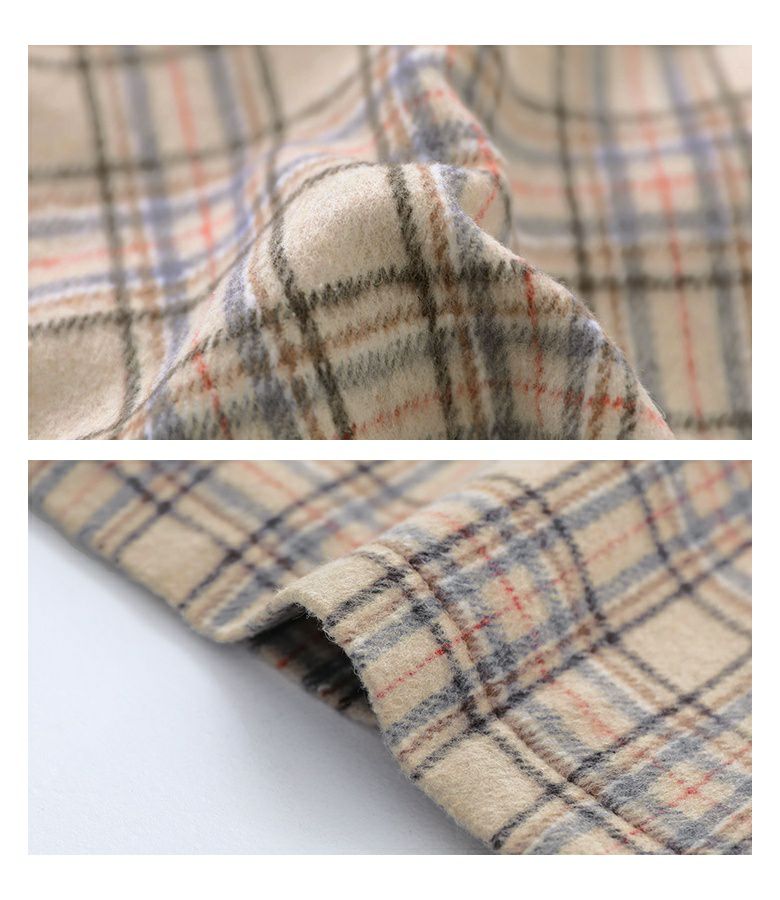 無地にはしっかりと厚みのあるメルトン生地を、チェック柄には柔らかく程良い厚みの生地を使用。どちらも毛足感があり、暖かみのある印象を与える生地感です。裏地にはさらりとした肌触りのタフタ生地を使用し、袖通しも快適な一枚。