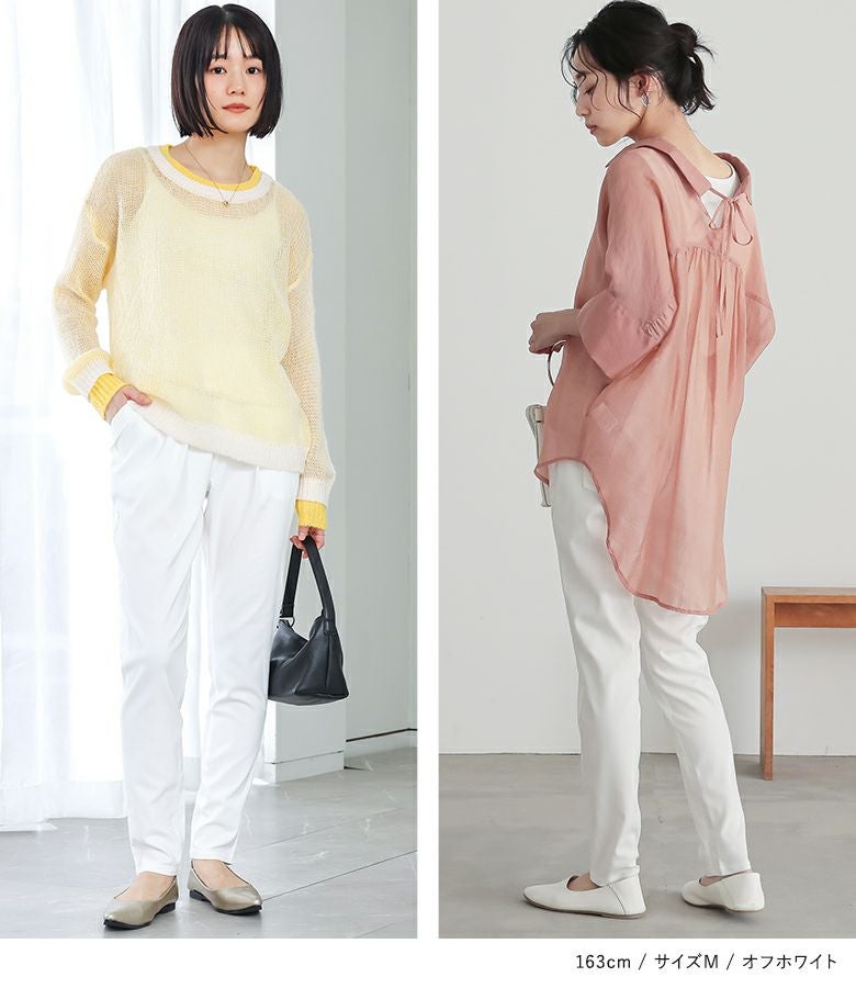 ■素材 ストレッチ性のある、しなやかで柔らかい生地感です。程よい厚みの生地で、ごわつかずにすっきりとご着用いただけます。