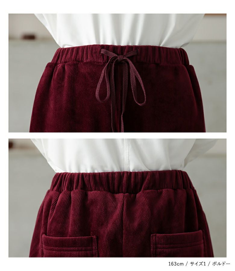 肌触り柔らかなリブ素材に、裏地はベロア起毛素材を使用。程よいストレッチ性で穿き心地が良く、しっかりとした厚みで暖かいから気付けば虜に。