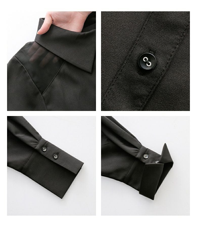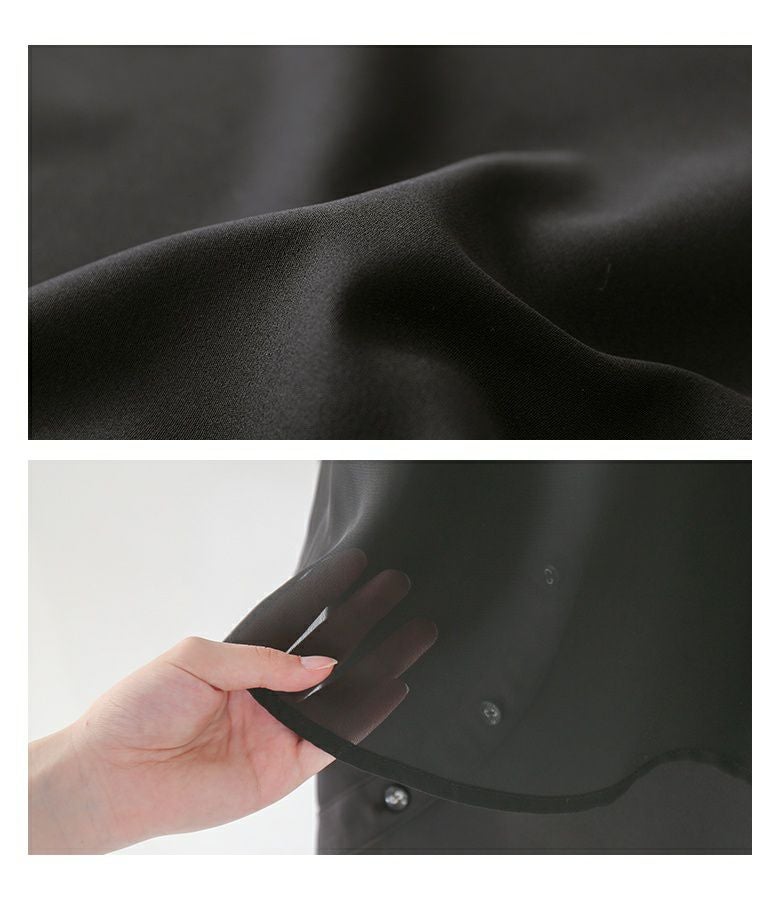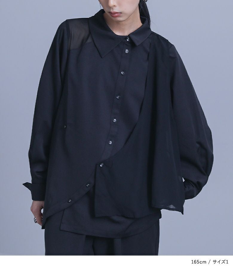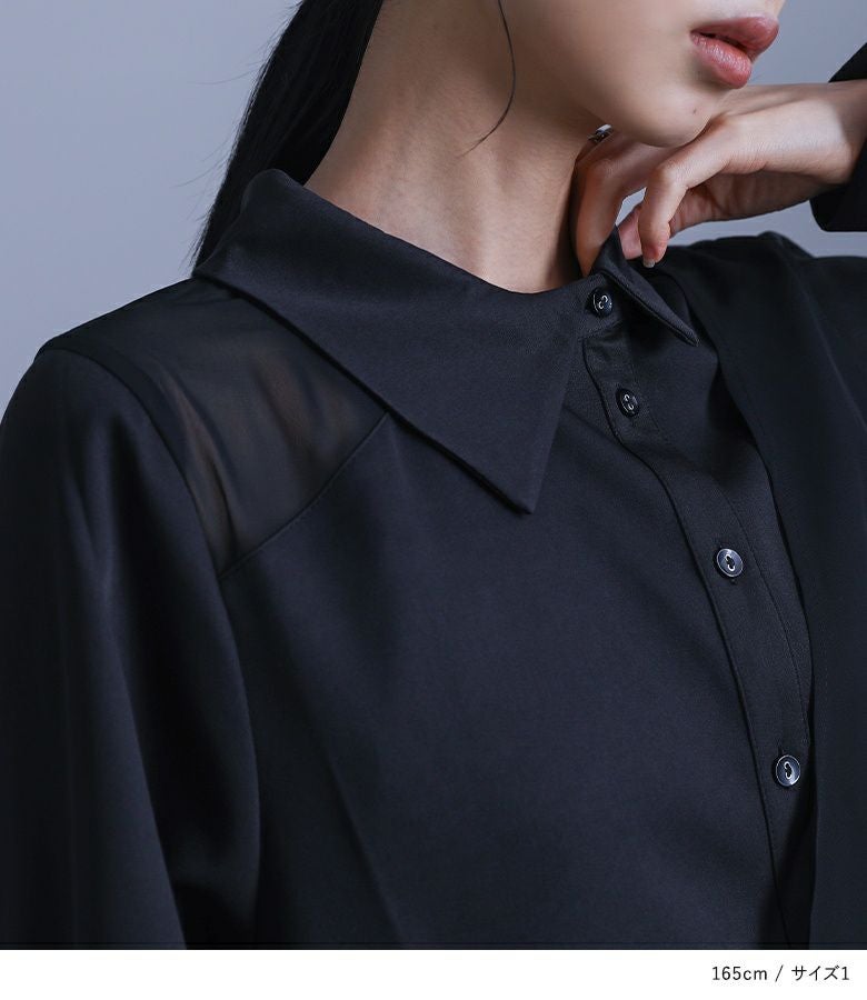 身生地はとろみのある透けない素材で、ジレには程よくシアーなシフォン生地を使用。ロングシーズンで活躍する、異素材使いが魅力的なアイテムです。