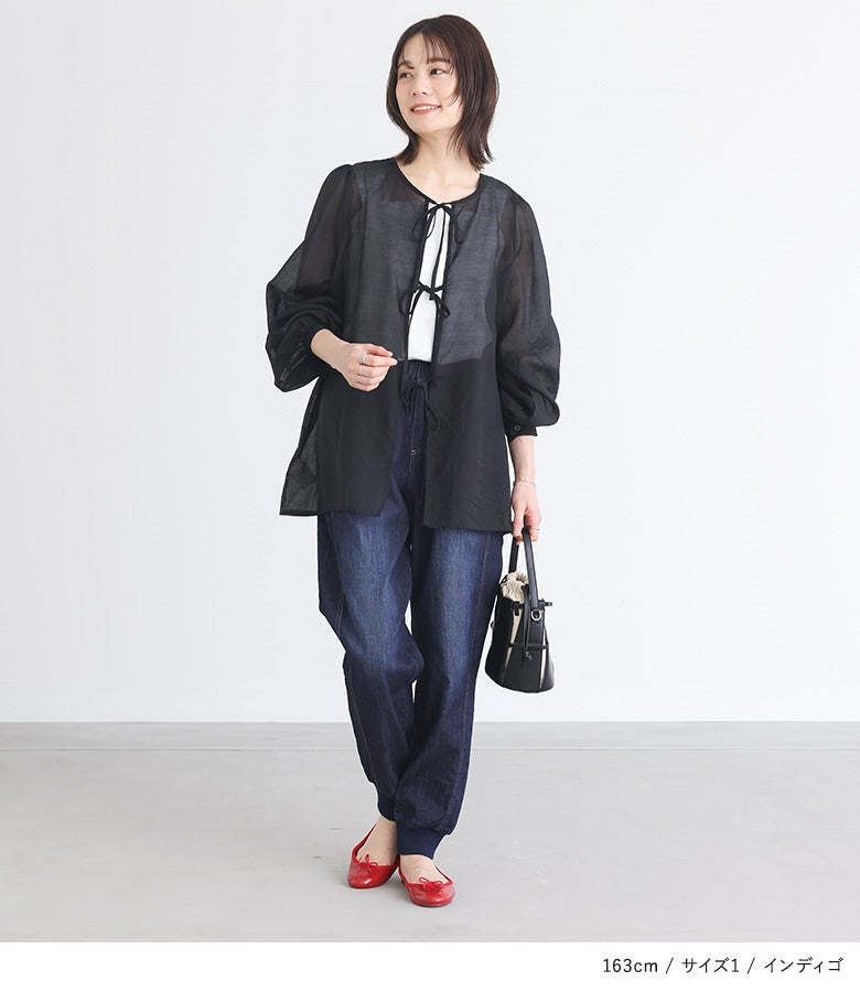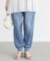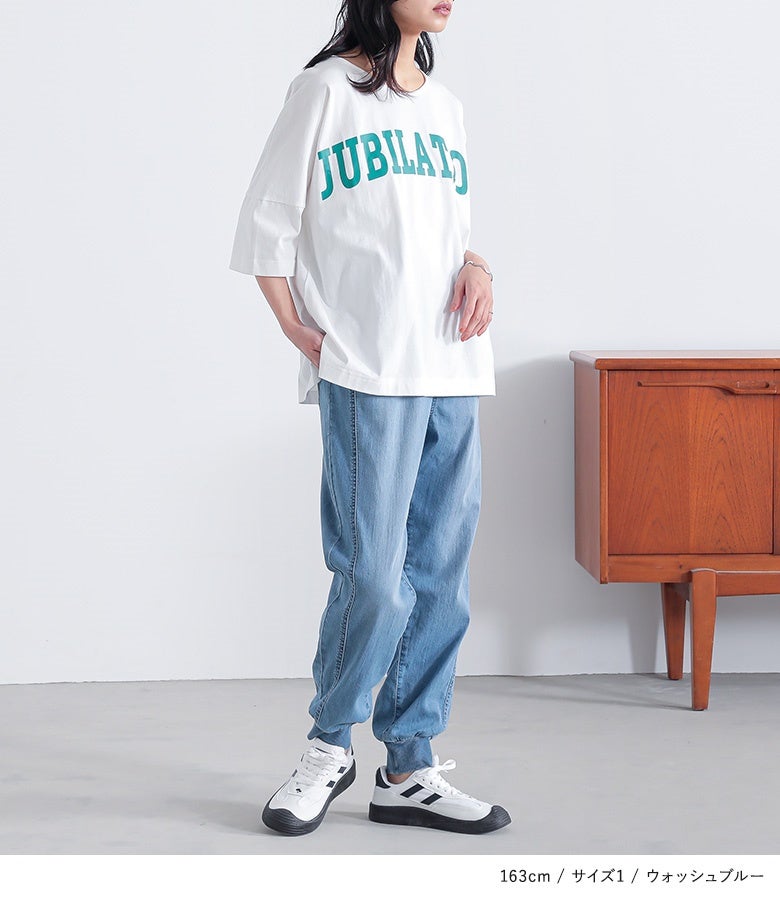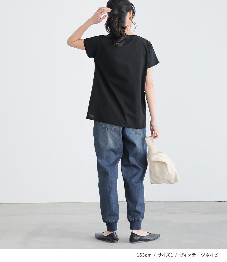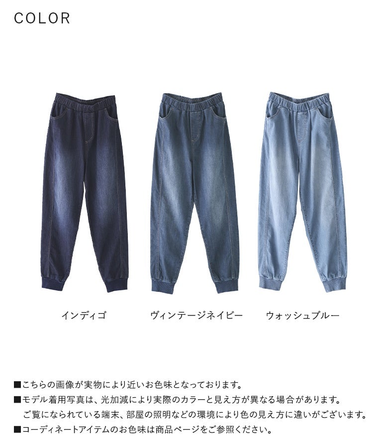 ヒップ周りはゆったりと、足首に向かって細くなるテーパードシルエットが魅力のひんやり冷感デニムジョガーパンツ。脚長効果が期待できる縦に入れたシーム切り替えと、ヴィンテージ感のあるブラスト加工がこなれ感をプラスします。足首はメリハリのあるリブデザインですっきりシルエットに。前後には便利なポケット付きです。