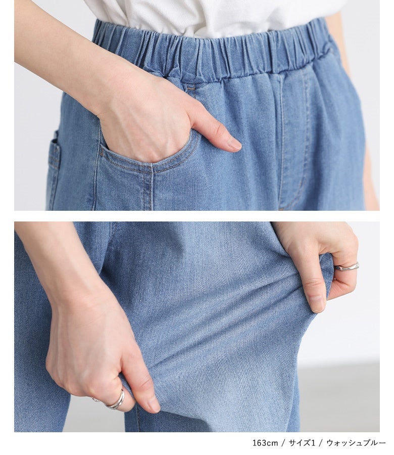 遮熱糸を生地に使用することで、一般的な生地よりも熱を伝えにくく、生地と肌の間の温度上昇を抑える接触冷感のひんやりデニム素材。ストレッチの効いた薄手で軽いデニムで、暑い季節も快適にご着用いただけます。UVカット率99%で肌に負担をかけずに紫外線をブロック。また、抗菌防臭加工を施した糸を使用し、汗や皮脂による臭いの発生源となる菌の繁殖を抑えます。