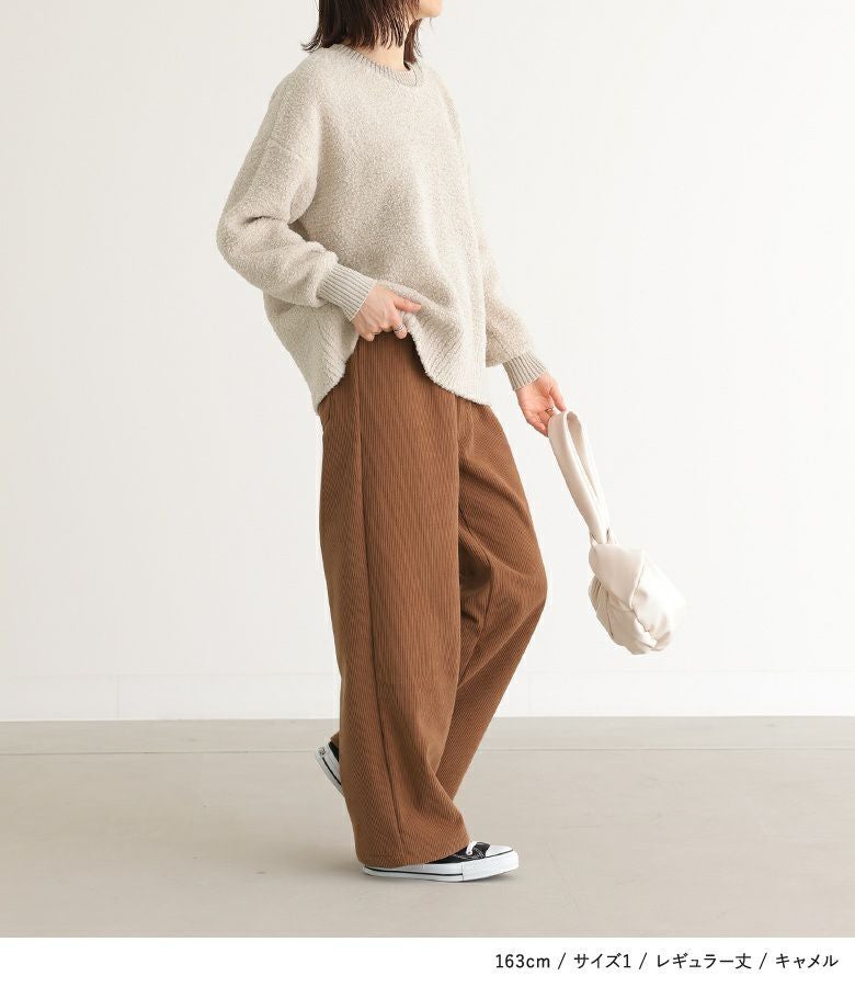 | 【1(M~L)】 ショート丈・着丈:かかとが隠れる位 レギュラー丈・着丈:かかと隠れる位 ロング丈・着丈:かかと2cm程余る位 ウエスト:ジャスト ヒップ:ややゆったり 太もも周り:ゆったり 全体:ゆったり