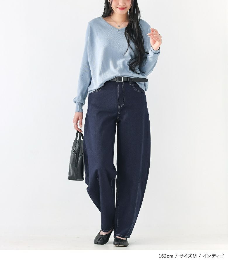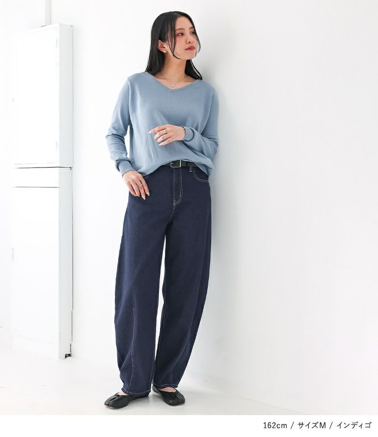 【M】 着丈(ウエスト穿き):かかとが隠れる位 ウエスト:ややゆったり ヒップ:ややゆったり 太もも周り:ゆったり 全体:スッキリ