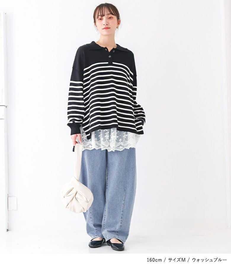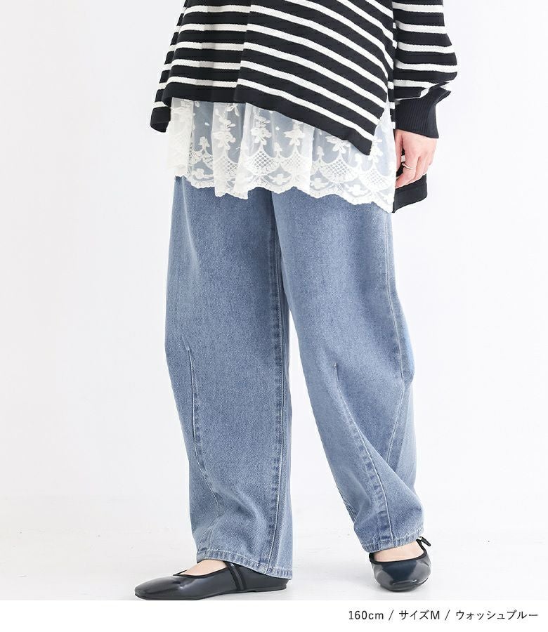 【M】 着丈(ウエスト穿き):かかとから3cm余る位 ウエスト:ややゆったり ヒップ:ゆったり 太もも周り:ゆったり 全体:ゆったり