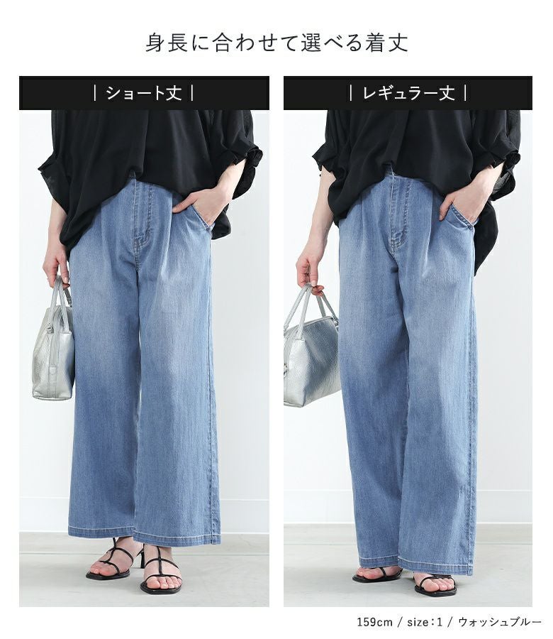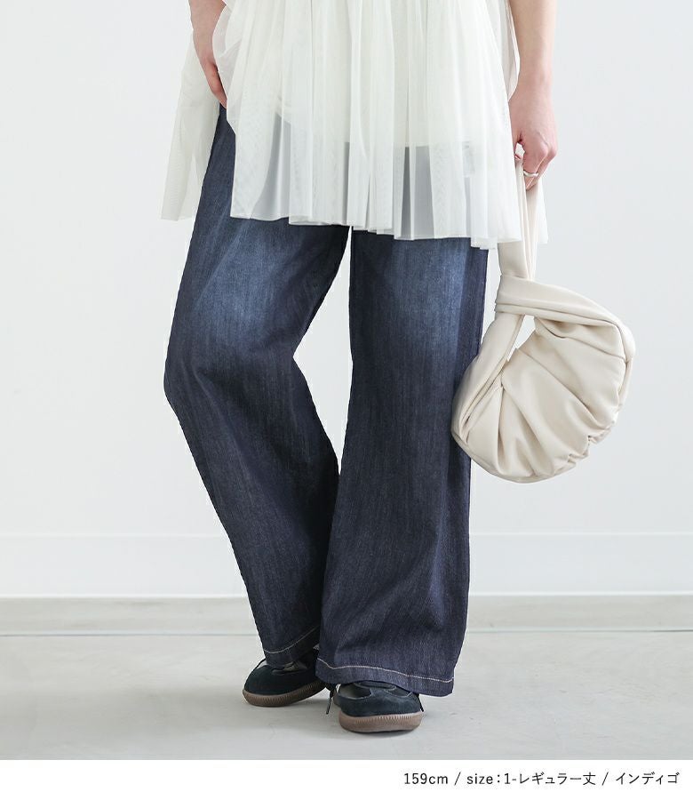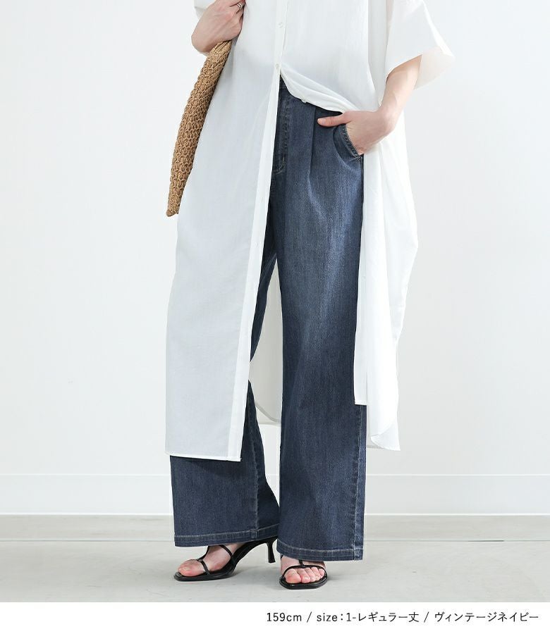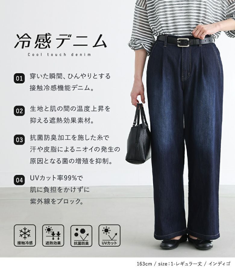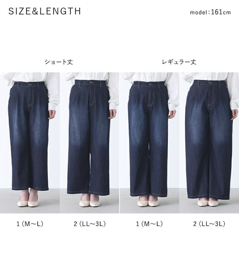 選べる着丈&M~3Lサイズ展開!すっきりとしたワイドシルエットの冷感デニム。