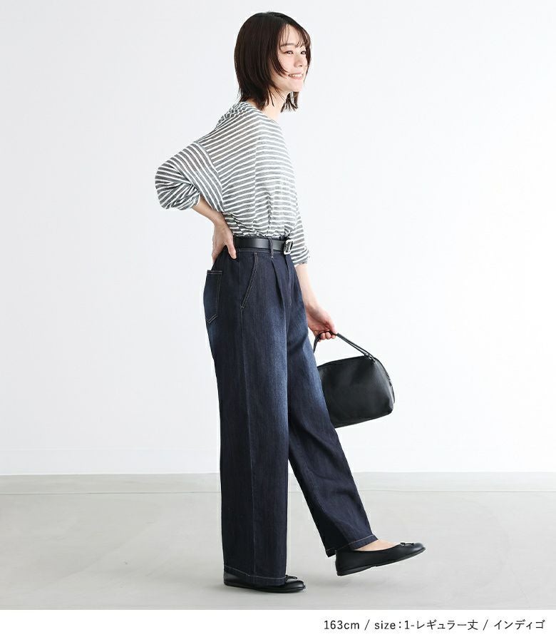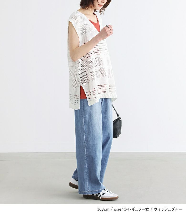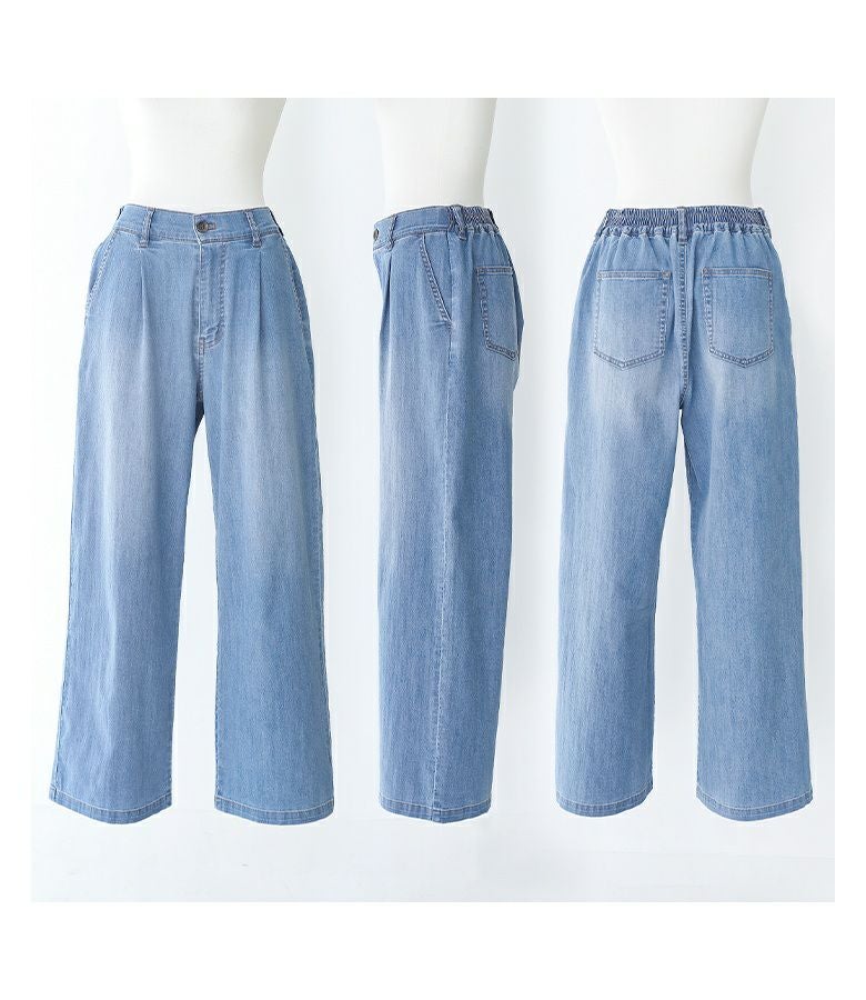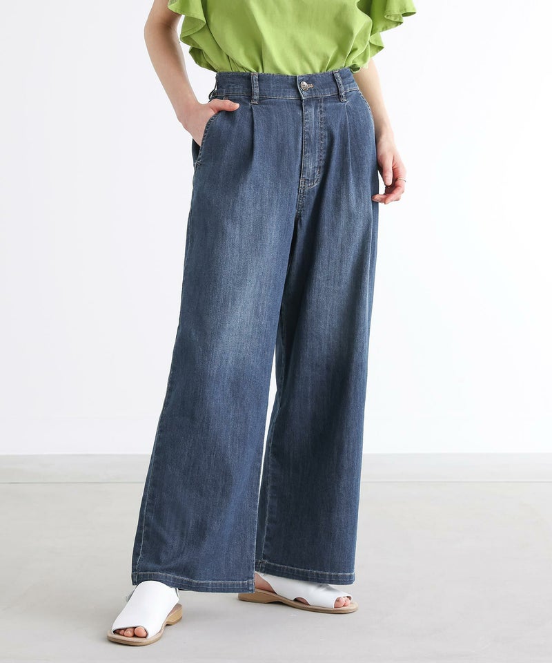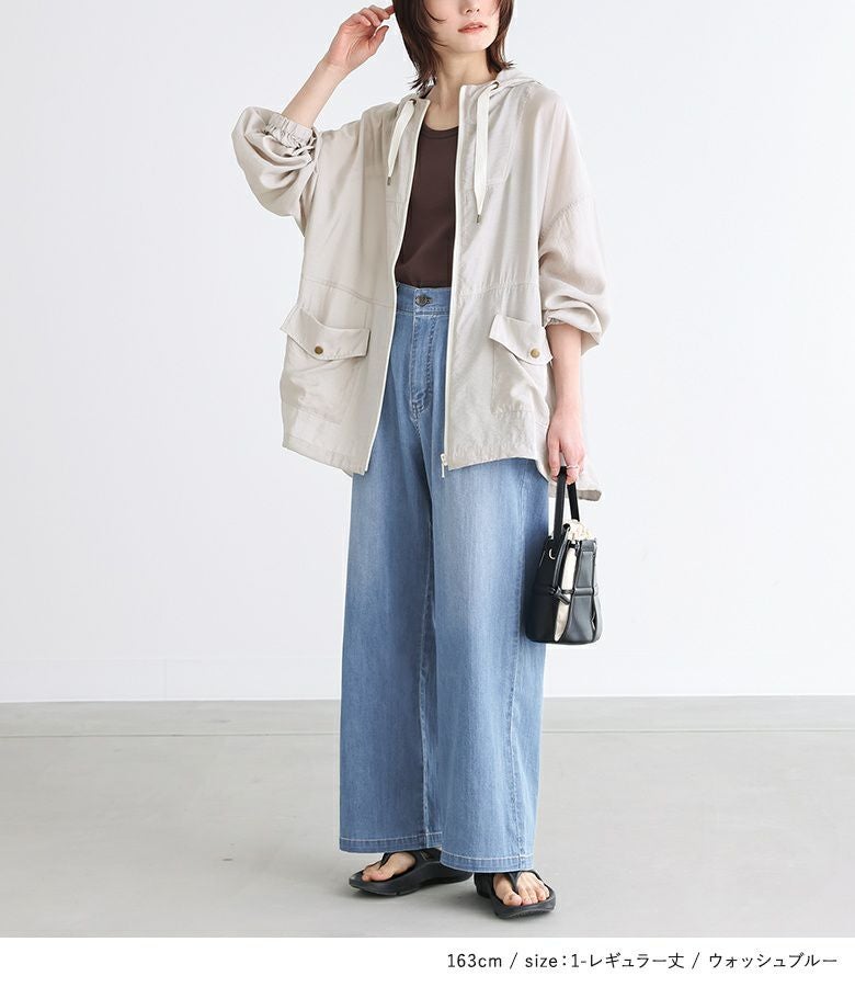 選べる着丈&M~3Lサイズ展開!すっきりとしたワイドシルエットの冷感デニム。