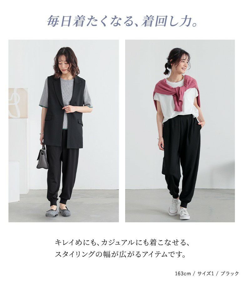 程よいゆとりのあるサイズ感です。裾がリブでしまっているのでスッキリとしたシルエットで穿けました。