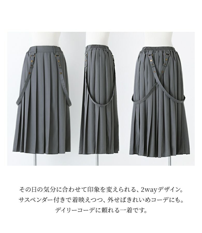 取り外しができるサスペンダー付きプリーツスカート。