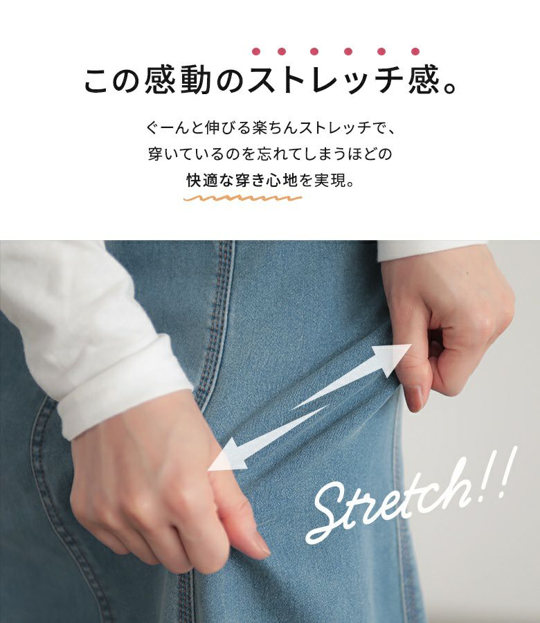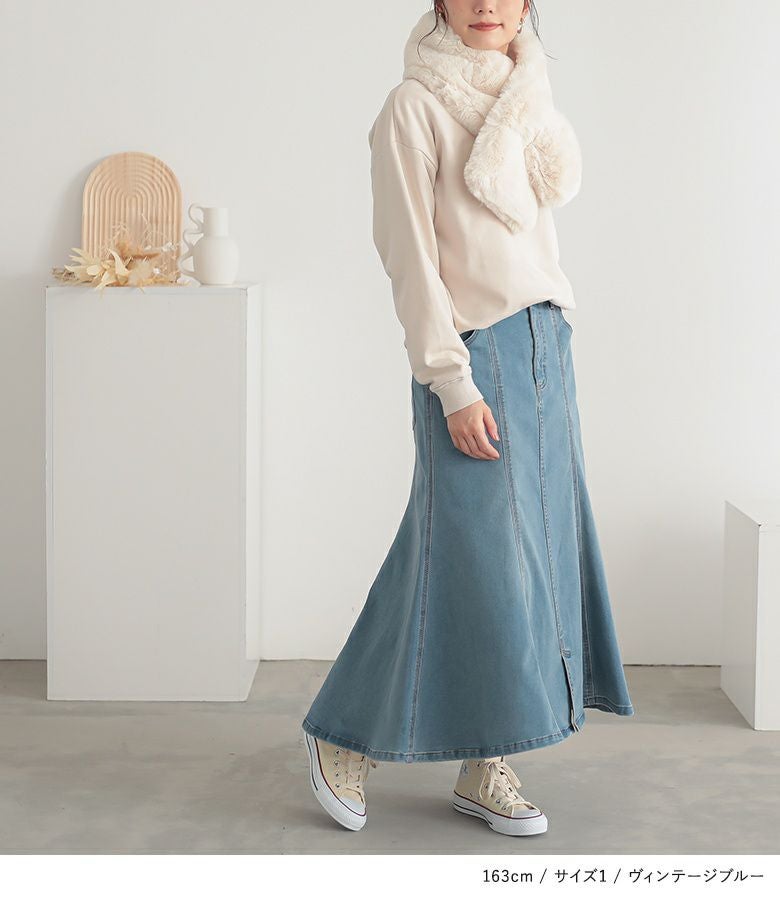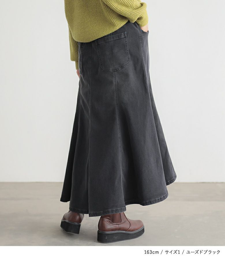 椿オイル配合のパウダー裏起毛が、しっとり滑らかで気持ちいい、優秀デニムスカート!