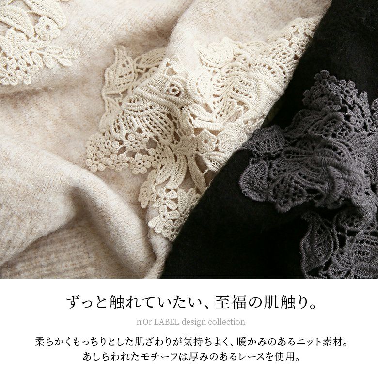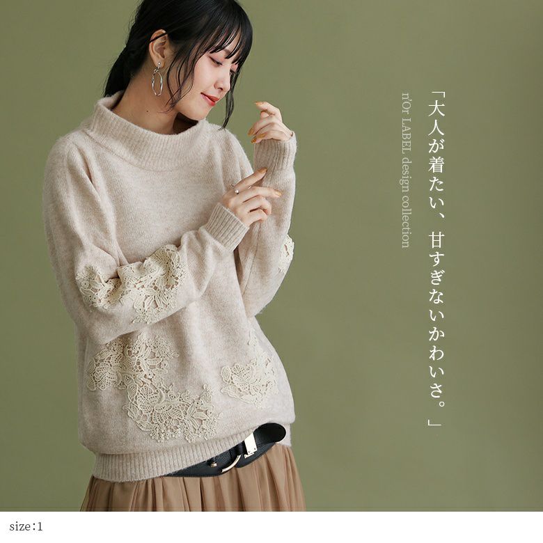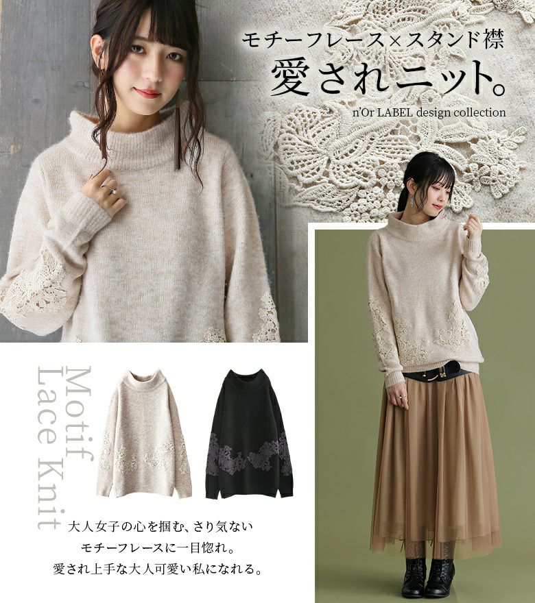 大人女子の愛され度が加速する≪n'OrLABEL≫レース装飾スタンドネックニットです。