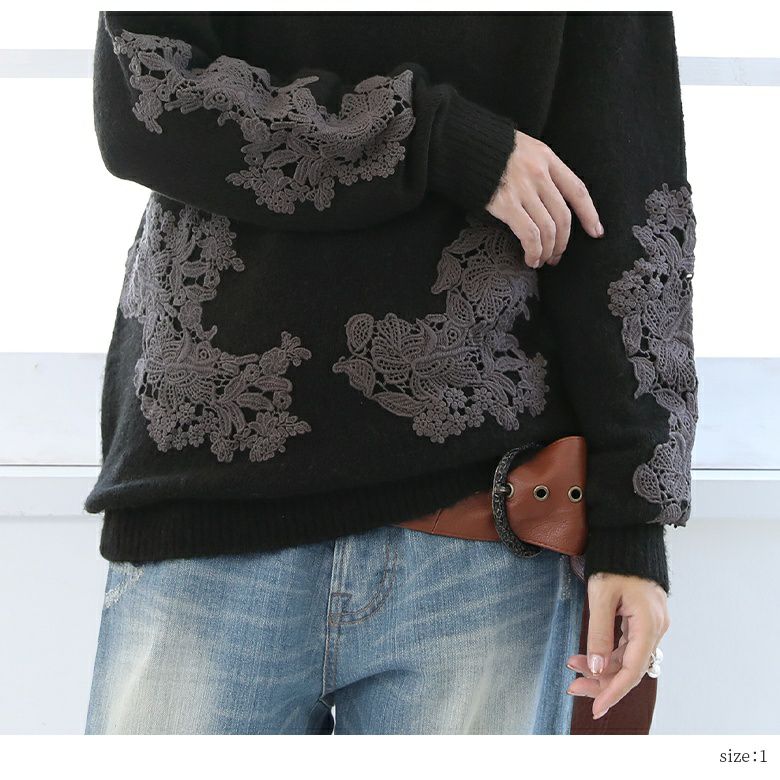 選べるM~3Lサイズ展開!愛され×あったかレース付きハイネックニット♪