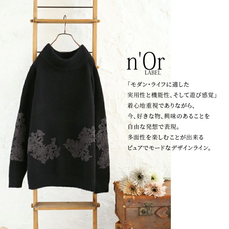『n'OrLABELレース装飾スタンドネックニット』