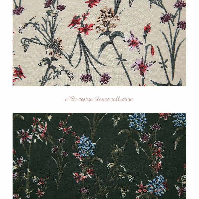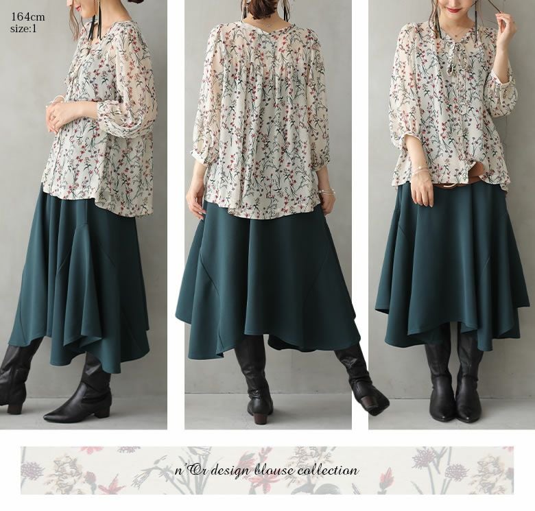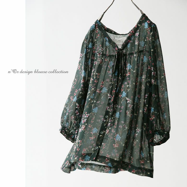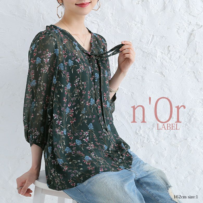 『n'OrLABELリボンタイ花柄シアーブラウス』