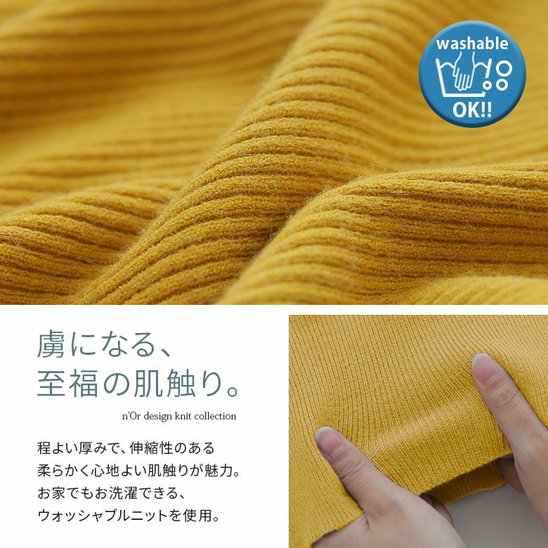 程よい厚みで柔らかく心地よい肌触りが魅力。家庭でも洗濯できるウォッシャブルニットを採用しました。