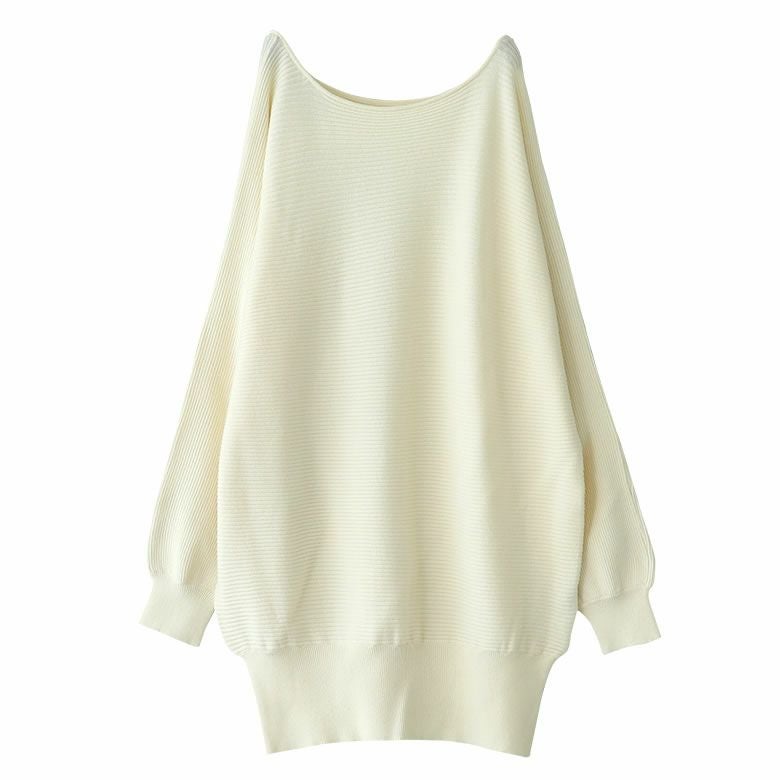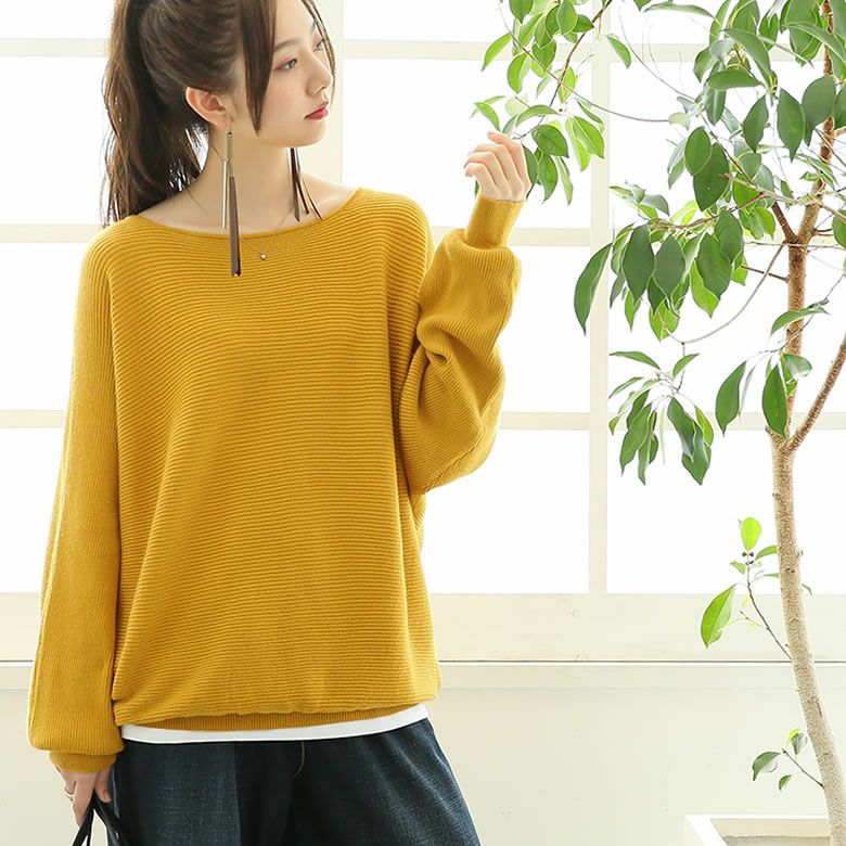 ボートネックでデコルテを綺麗に魅せ。太めの裾リブがさり気ないお洒落のアクセントに。シンプルな中にぽわんとさせた袖元や、ゆるっとシルエットでお洒落に差が付きます。