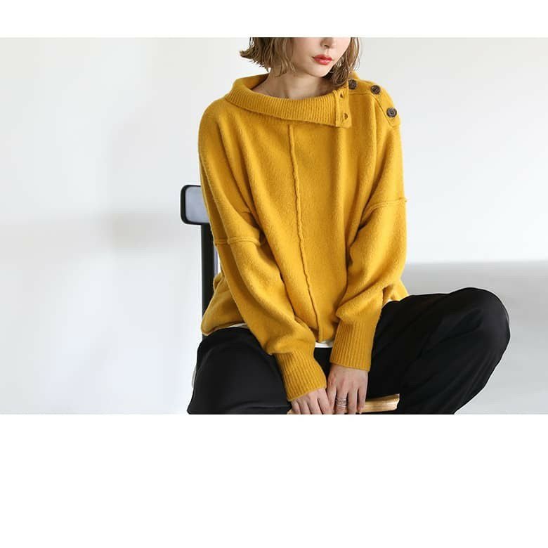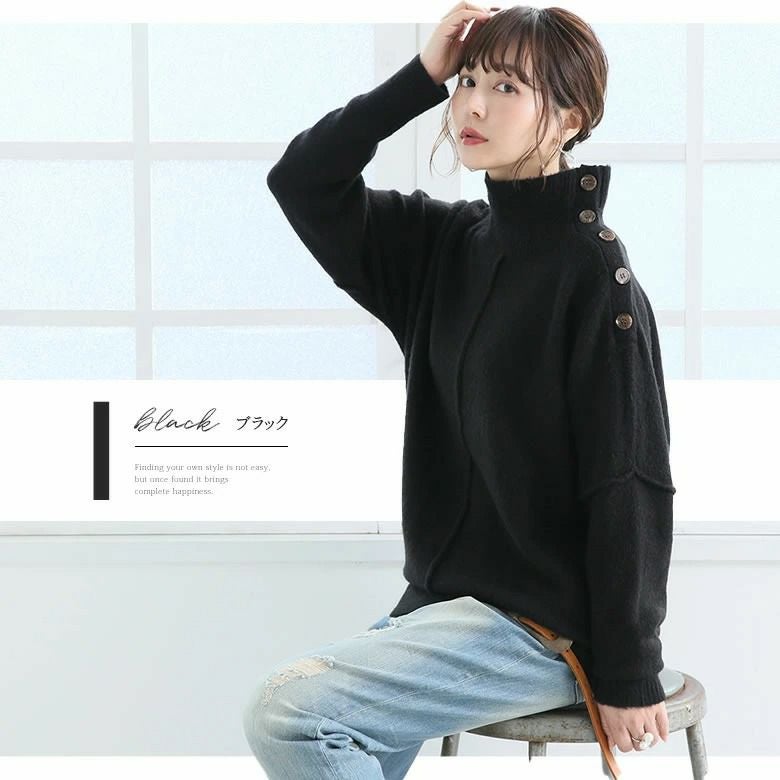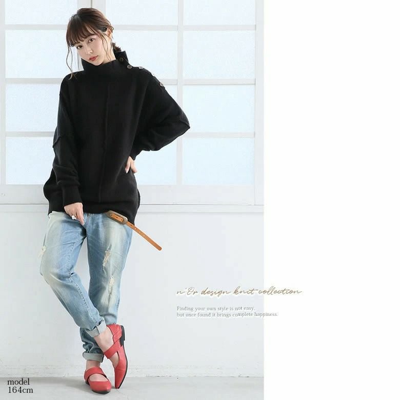 アレンジで遊ぶ肩ボタンタートルネックニット♪