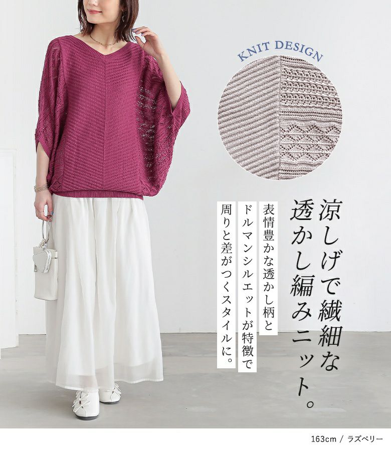 『n'OrLABEL前後2way透かし編みドルマンニット』