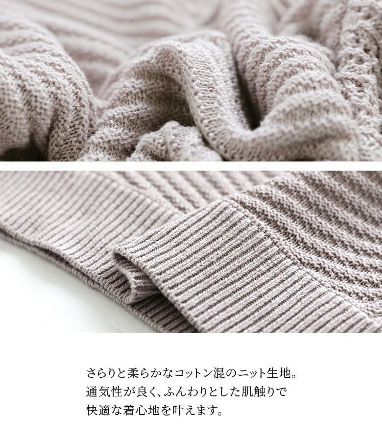 ※ニット製品は身体に自然と馴染む伸縮性が特徴となり多少サイズや風合いの個体差が生じる場合がございますがご了承のうえお買い求め下さいませ。