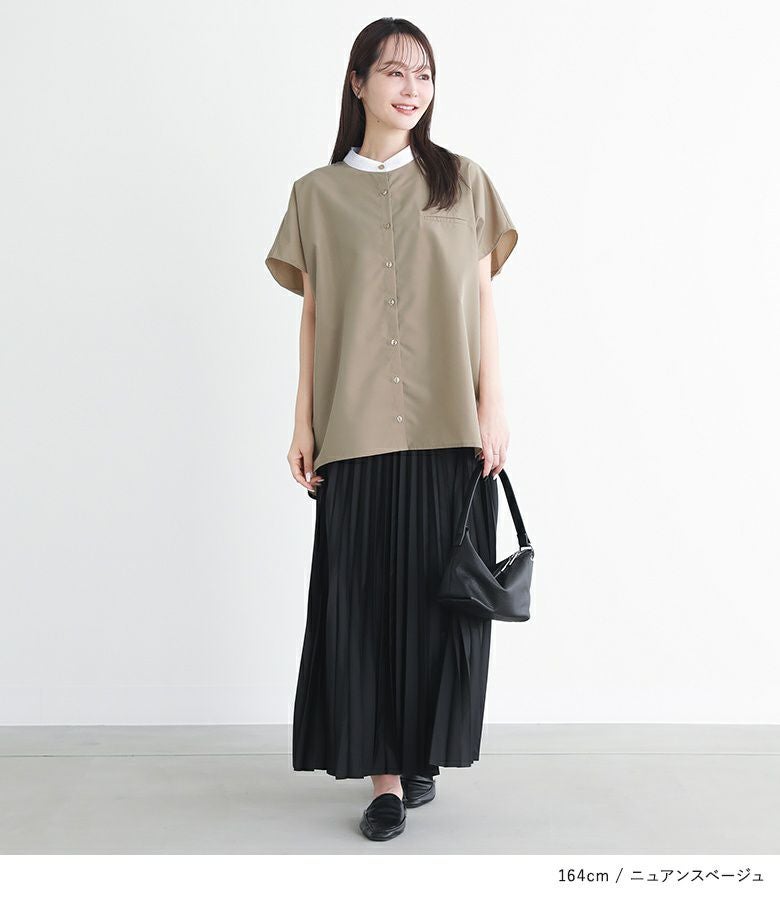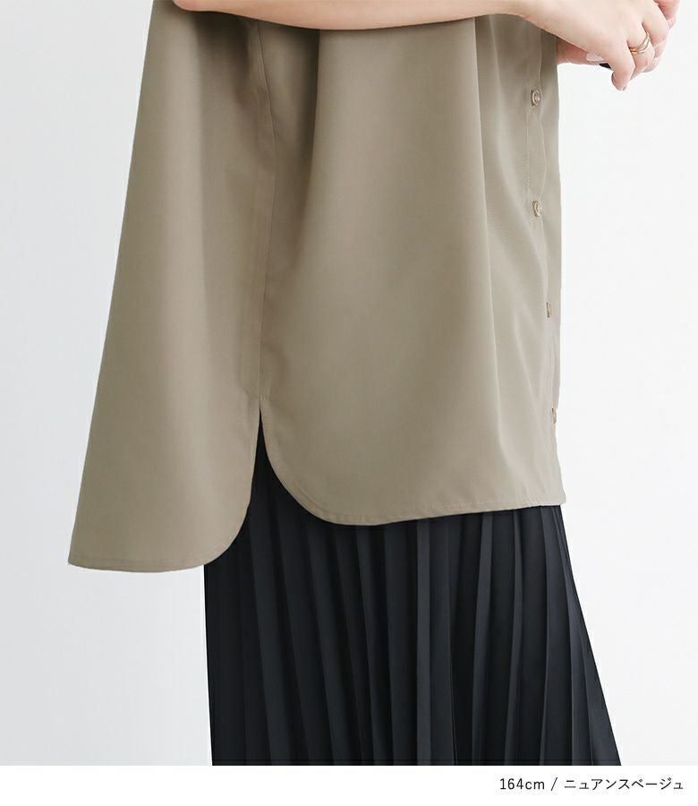 さらりと軽く、肌触りの良い柔らかな着心地の布帛生地。薄手ながら上質感を感じさせる一着です。