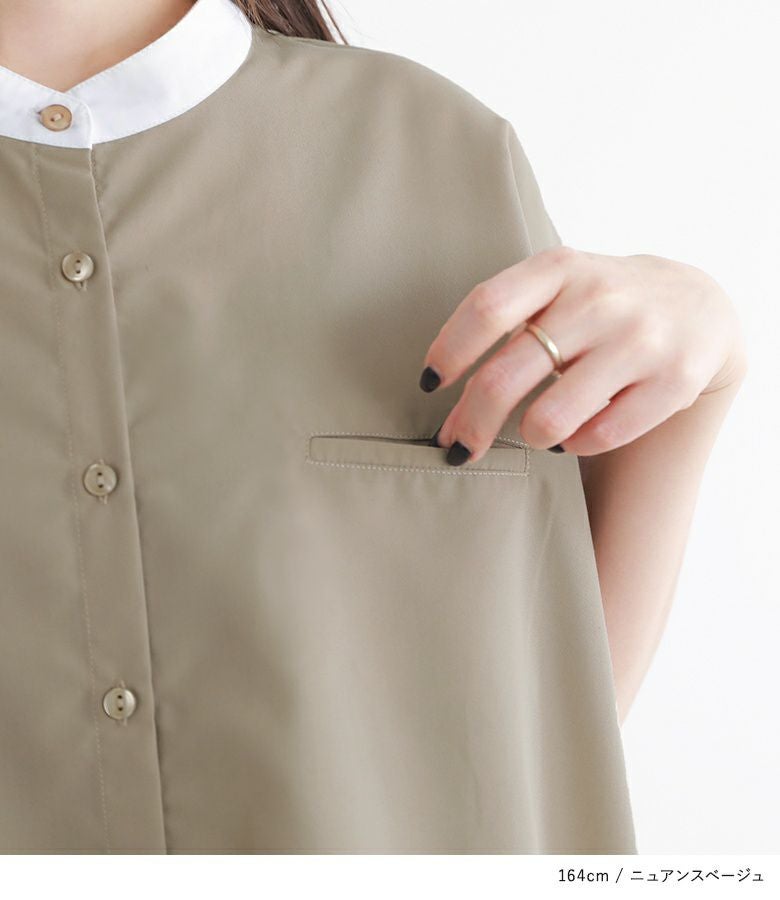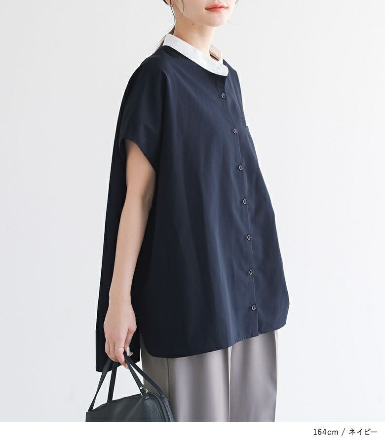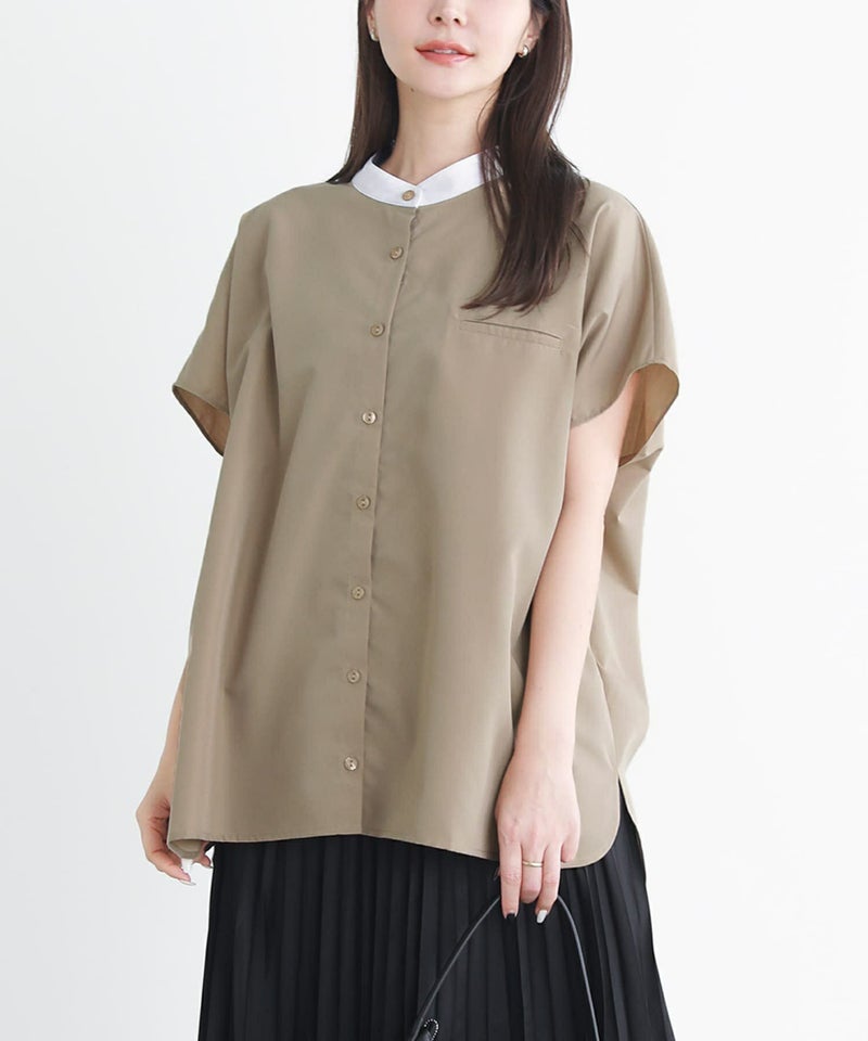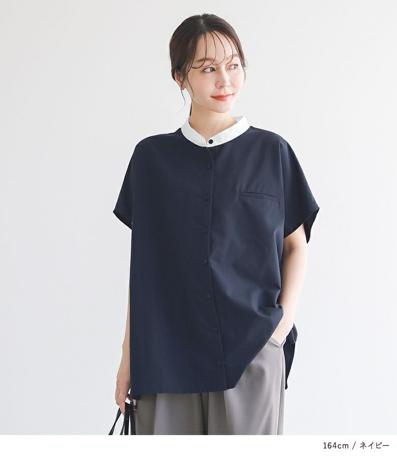 洗纏さを纏う衿配色バンドカラーブラウス♪