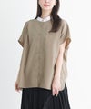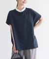 クリーンな印象の白襟と、計算されたリラクシングなシルエットが魅力のブラウス。さりげない胸ポケットに、前後差のあるラウンドした裾ラインが洗練された印象に導きます。