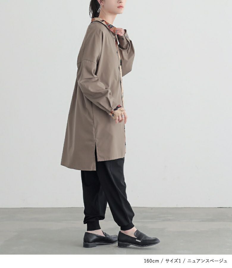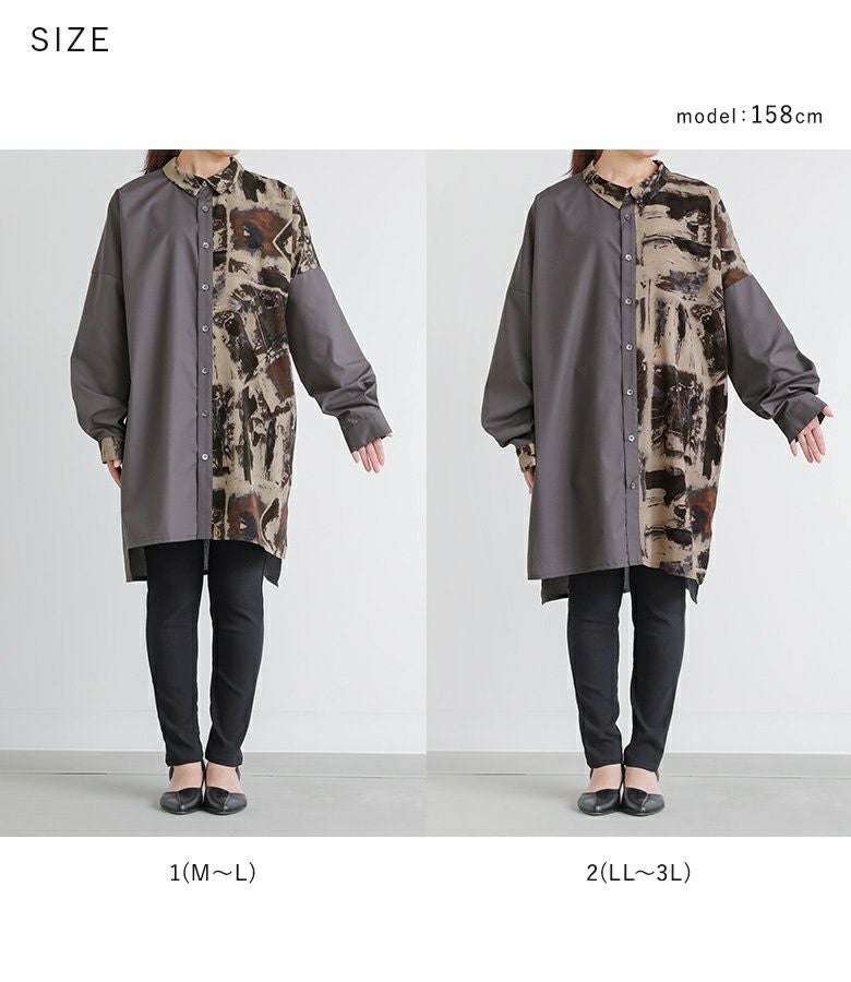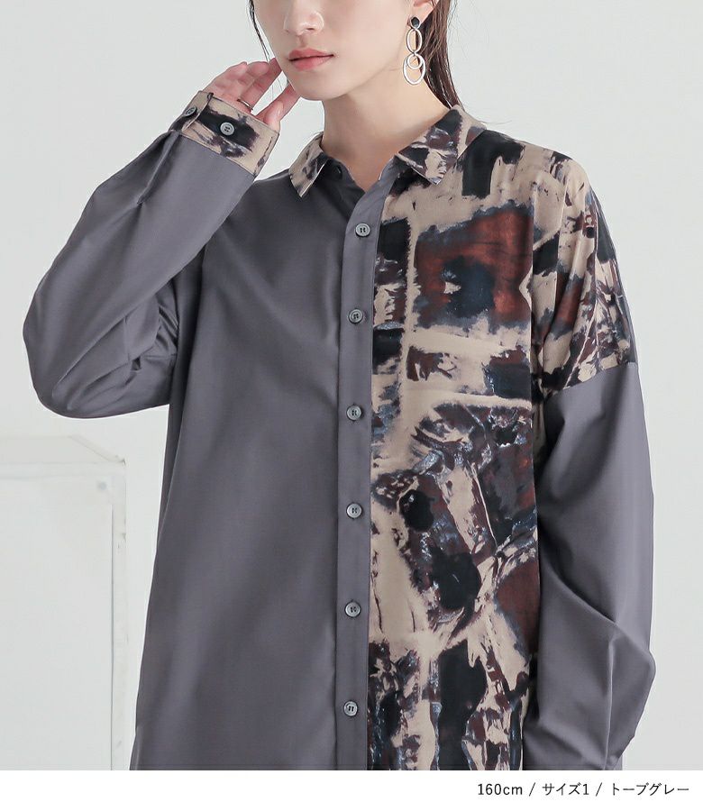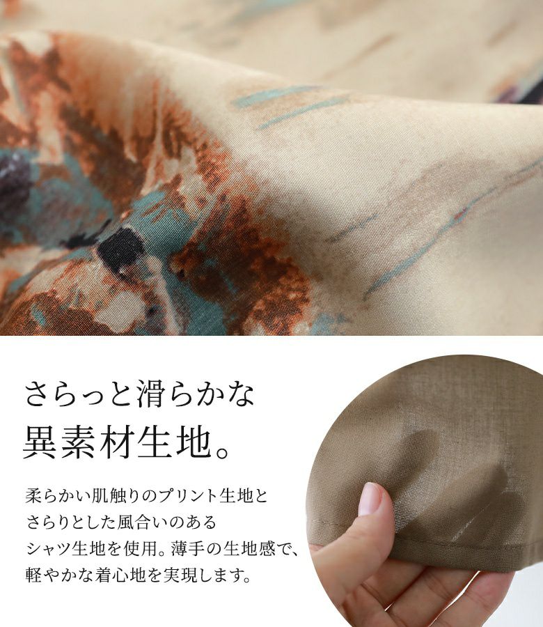 柔らかで心地よいプリント生地に、風合いのある無地のシャツ生地をドッキングした異素材MIXで差をつける。