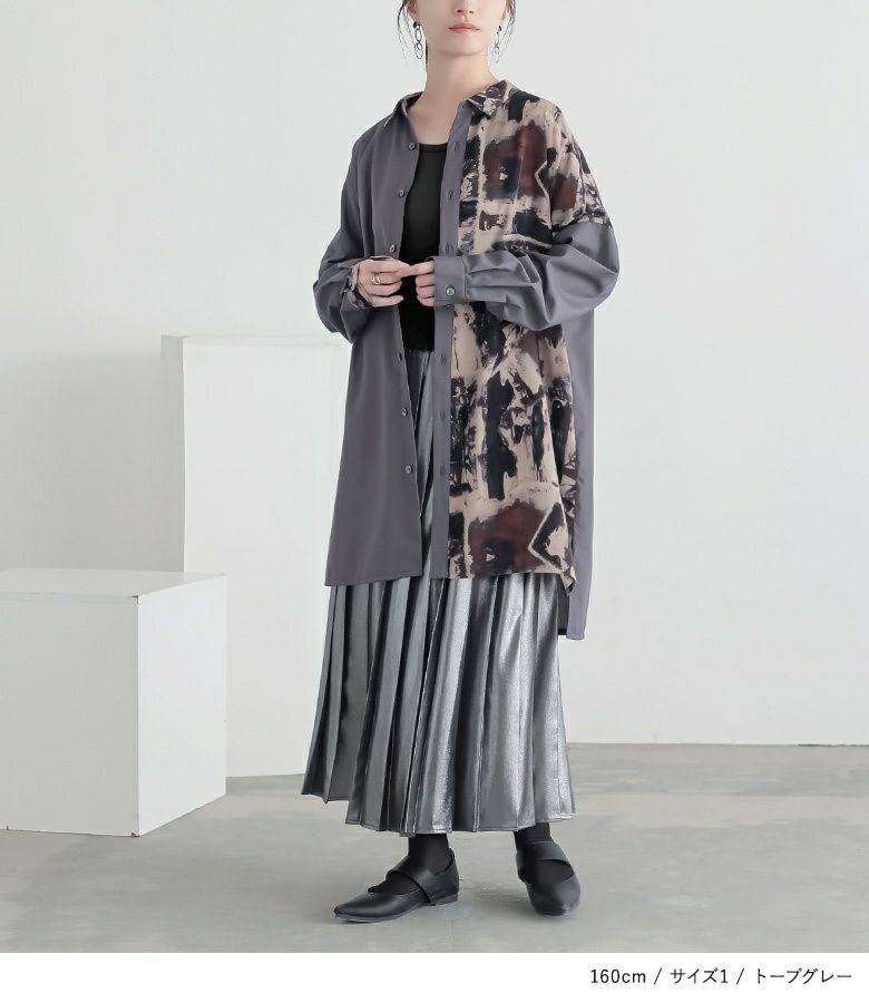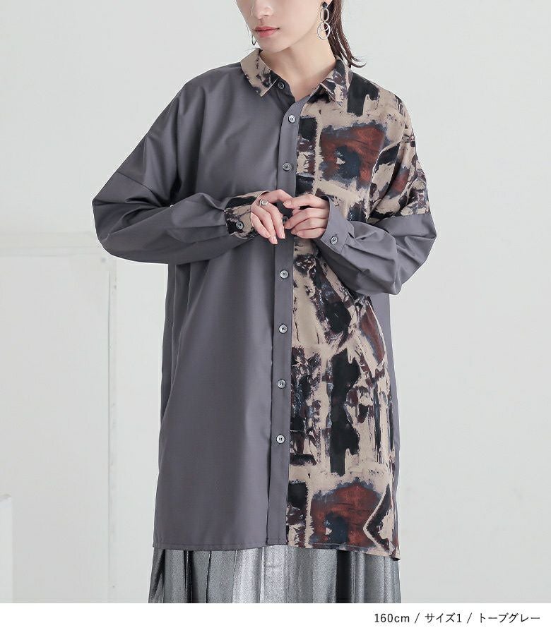 こだわりの配色バランスでこなれ感を演出するアートプリント×無地ロングシャツ。