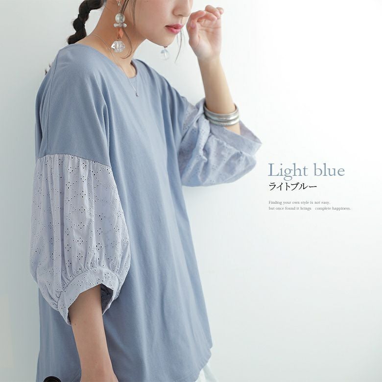 袖が可愛くて購入しました。水色も涼しく見えて色々と着こなせそうです。