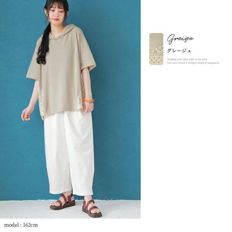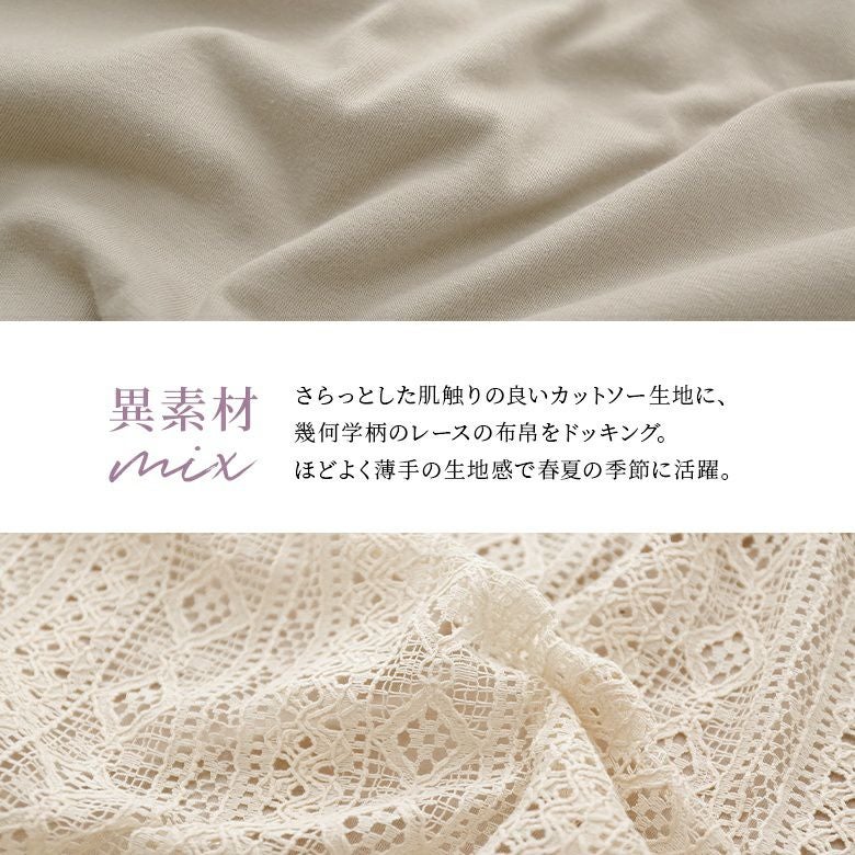 さらっとした肌触りの良いカットソーと、甘くなりすぎない幾何学柄のレースをドッキング。