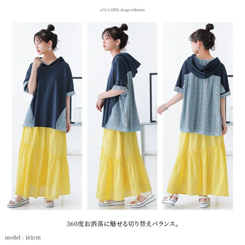 『n'OrLABEL幾何学柄レース切替パーカー』