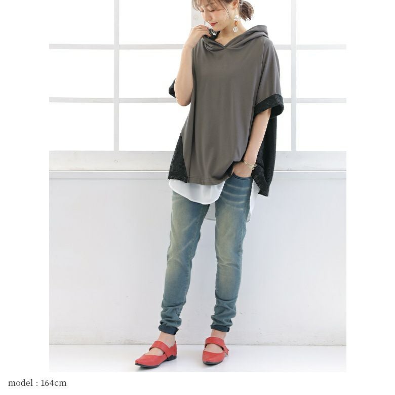 異素材の組み合わせでセンス良く垢抜ける、デザインパーカー♪