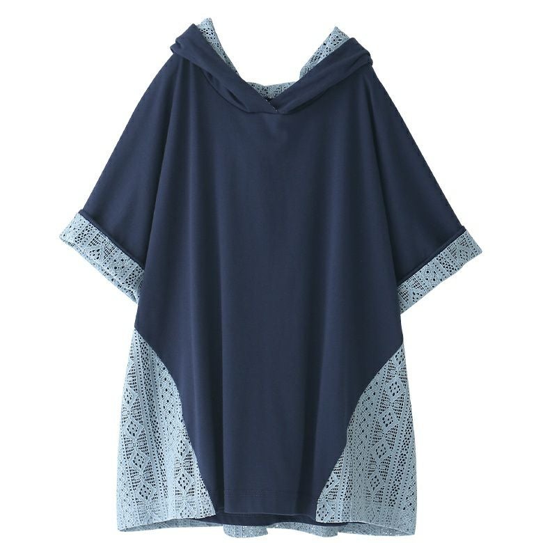 他にはないデザインが気に入ってます♫ フード付きの半袖って何か好きなんです♫ 二の腕、お腹も隠れて助かってます(笑)