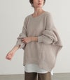 手を上にあげたような変形シルエットが生み出す脇のドレープ感がお洒落なゆるっと感を表現。前後差のある着丈は、パンツにもスカートにも合わせやすい丈感でデザインされたこだわりのシルエットです。