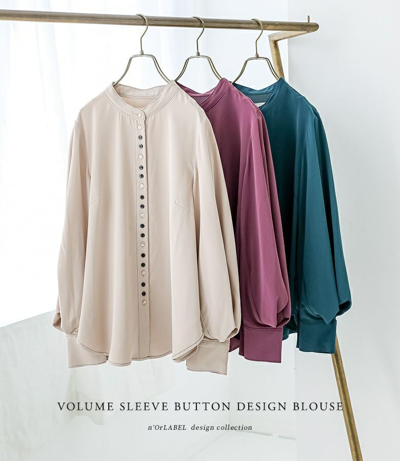 袖口に大きくタックを入れた立体的で構築的なボリューム袖は、カフスを長めにすることでメリハリのあるデザインに。個性的な配色ボタンデザインが周りと差のつくセンスを放ちます。
