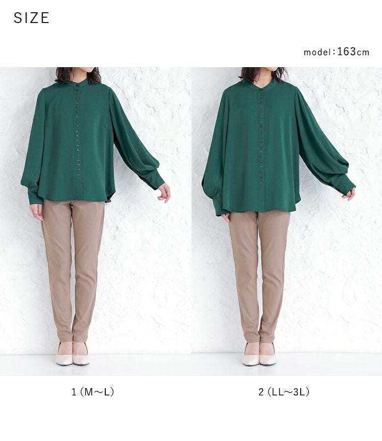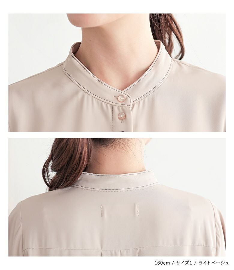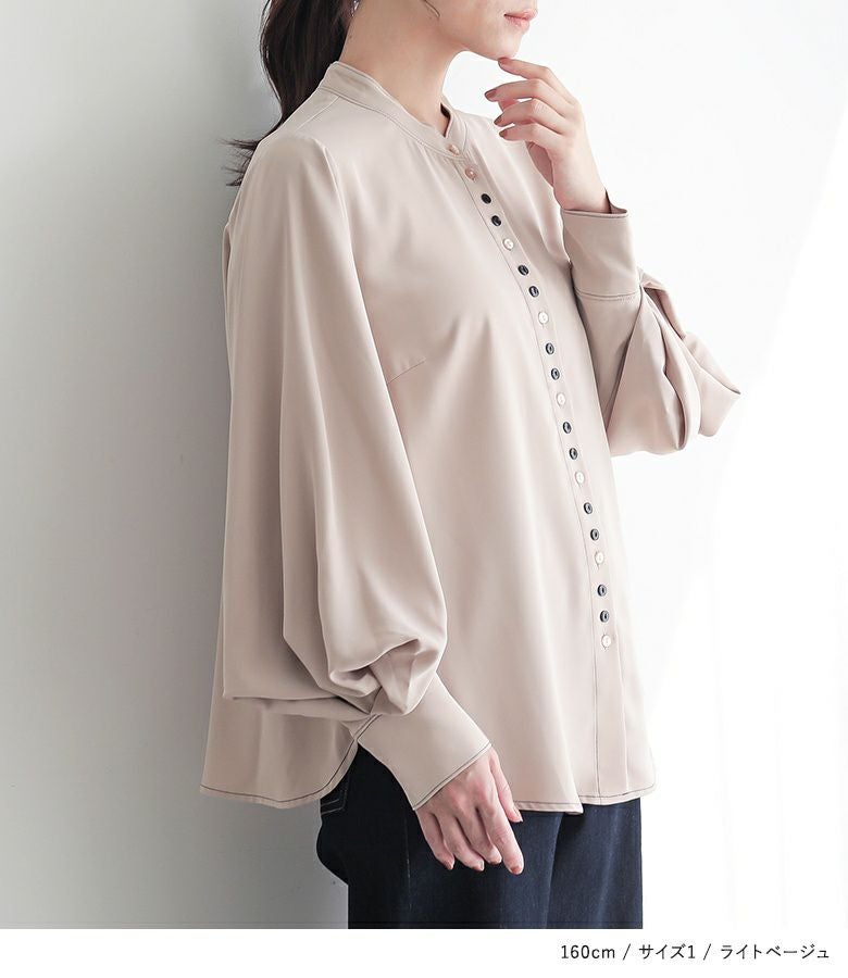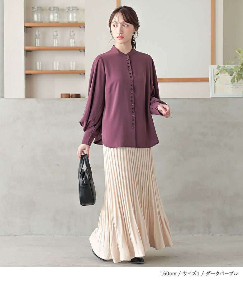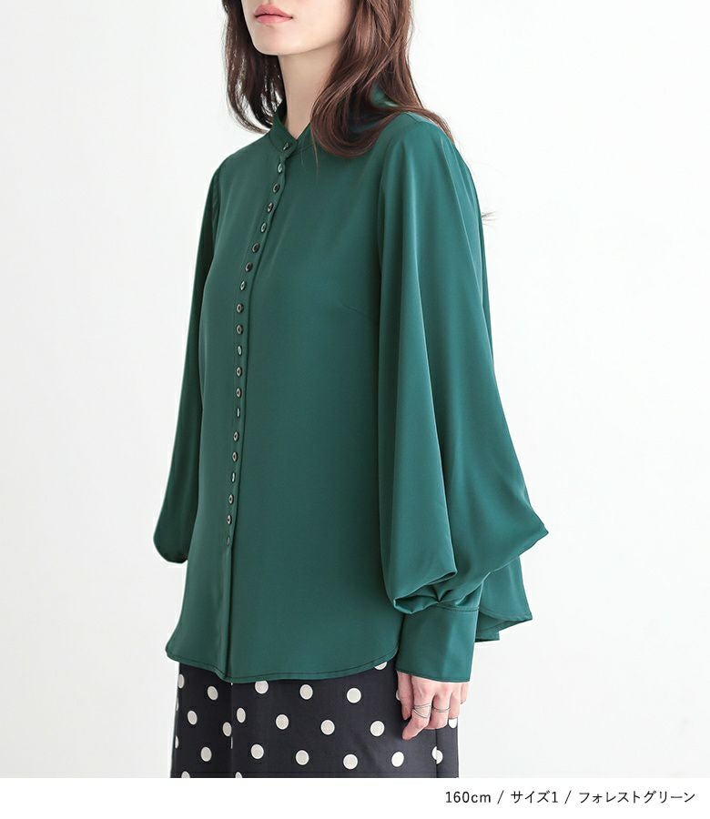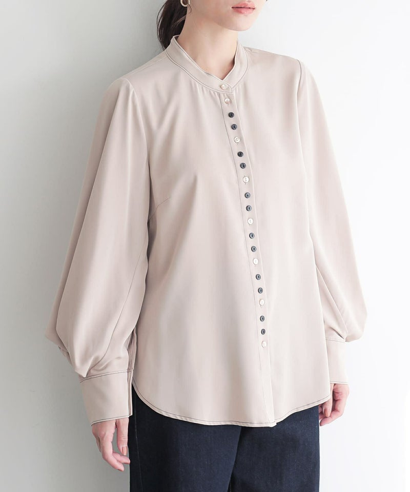 "袖コンシャス"なデザインが、着こなしに華を添えてくれる、バンドカラーブラウス♪