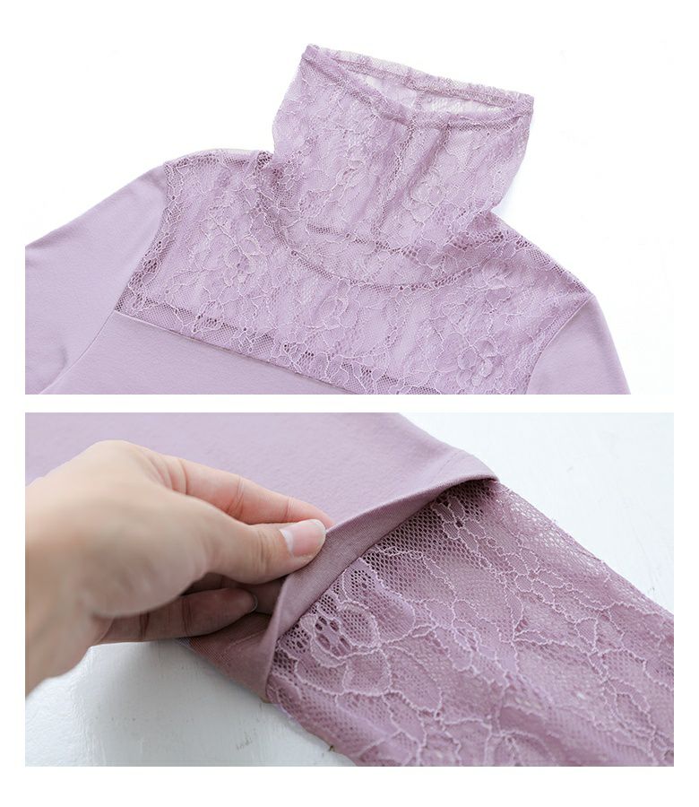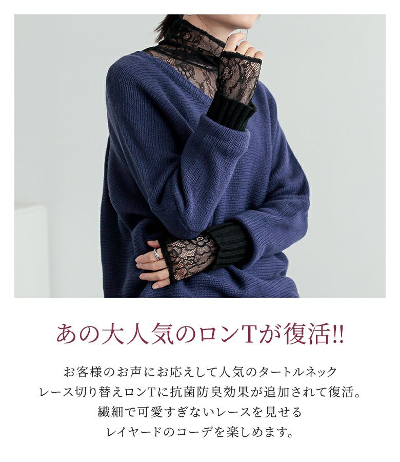 重ねるだけであったかお洒落を叶える、タートルネックレース切替ロンT♪