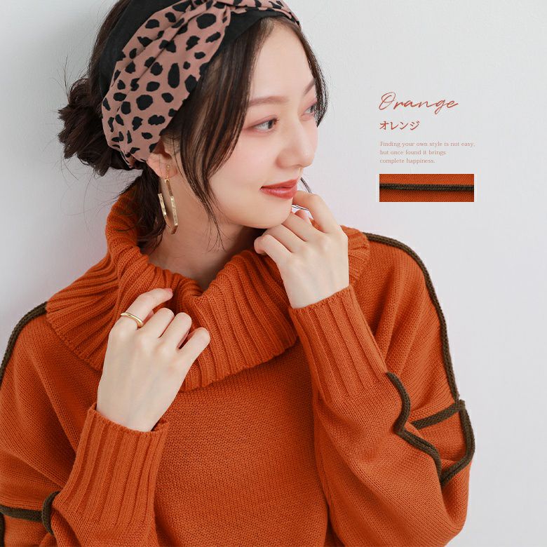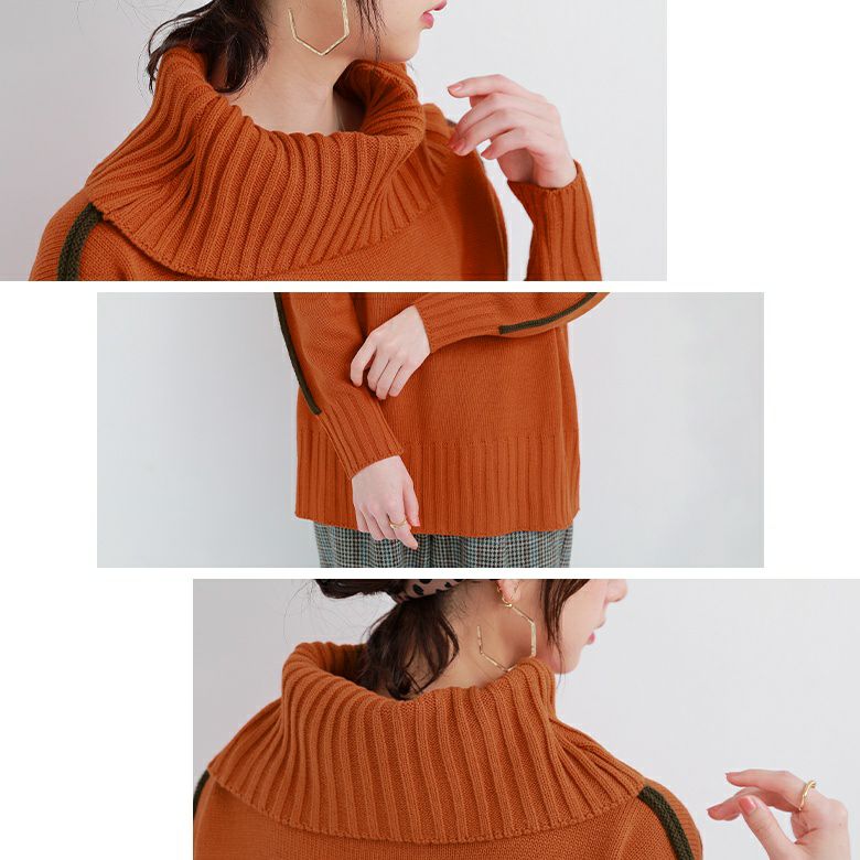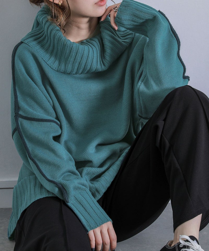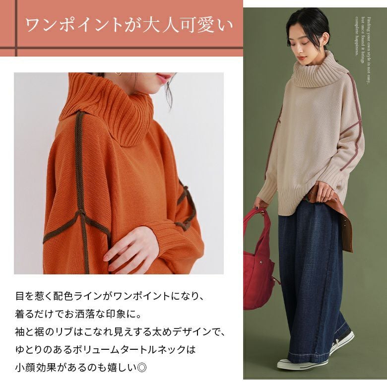 目を惹くバイカラーデザインがセンスを格上げする、タートルネックニット♪