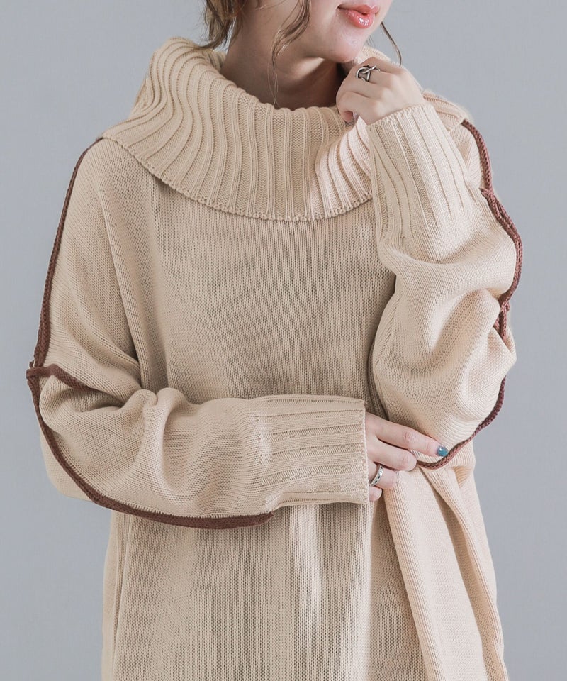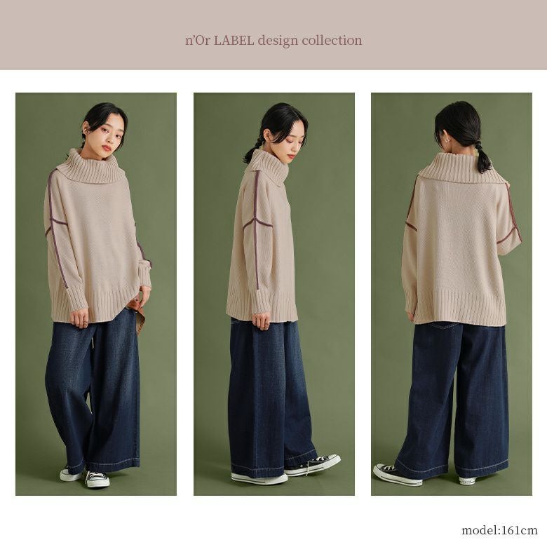 『n'OrLABEL配色ラインボリュームタートルニット』